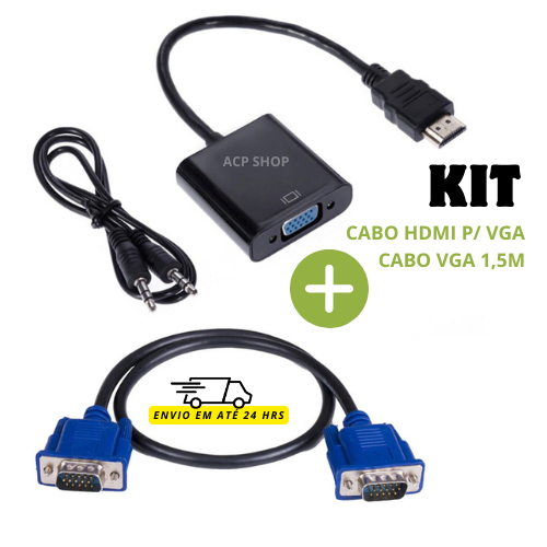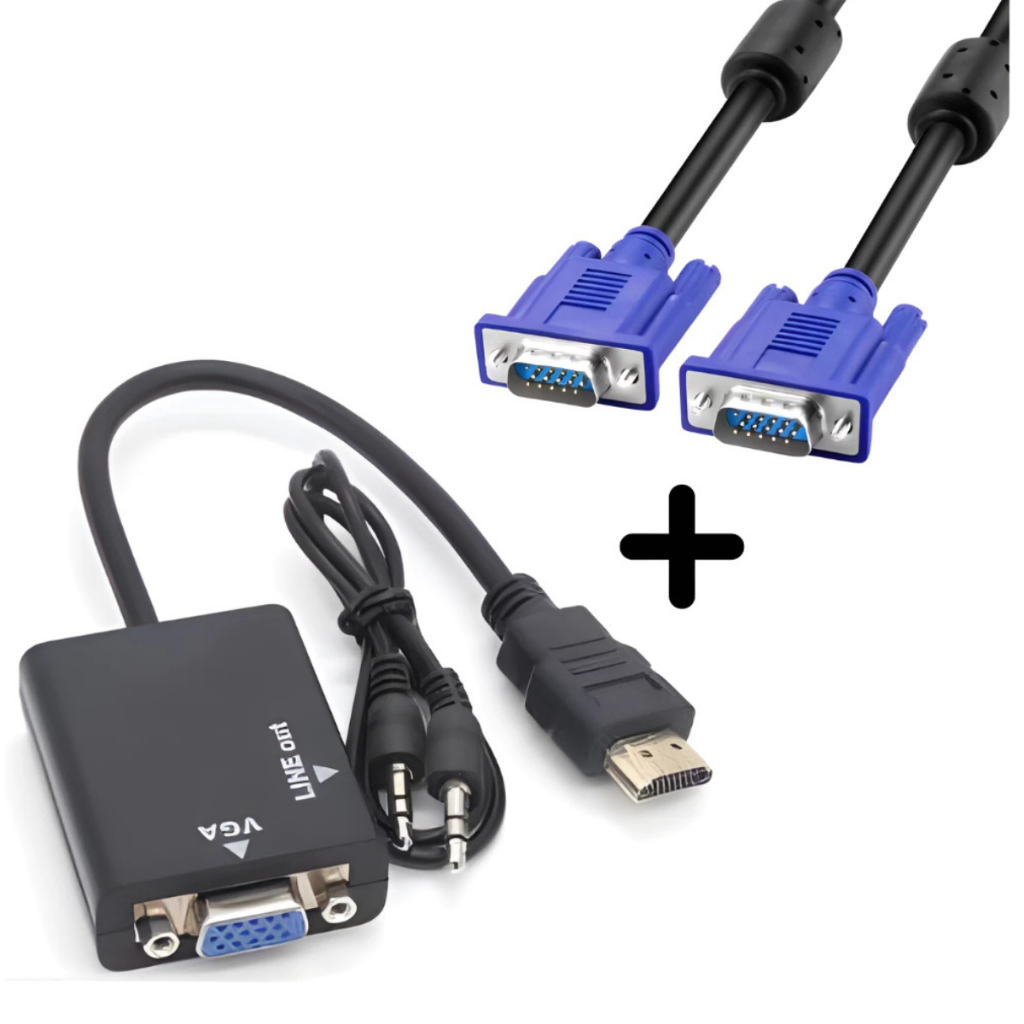 Cabo Conversor HDMI para VGA + Áudio P2 — Conecte PC na TV e Monitores (1,5m)