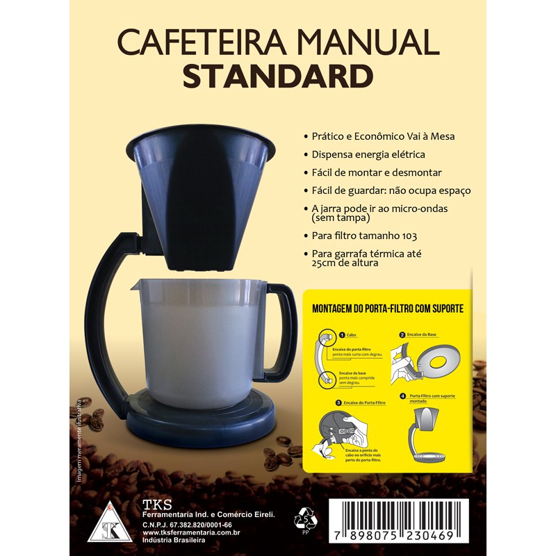 Cafeteira Manual plástica, suporte para filtro de café n° 103 com jarra