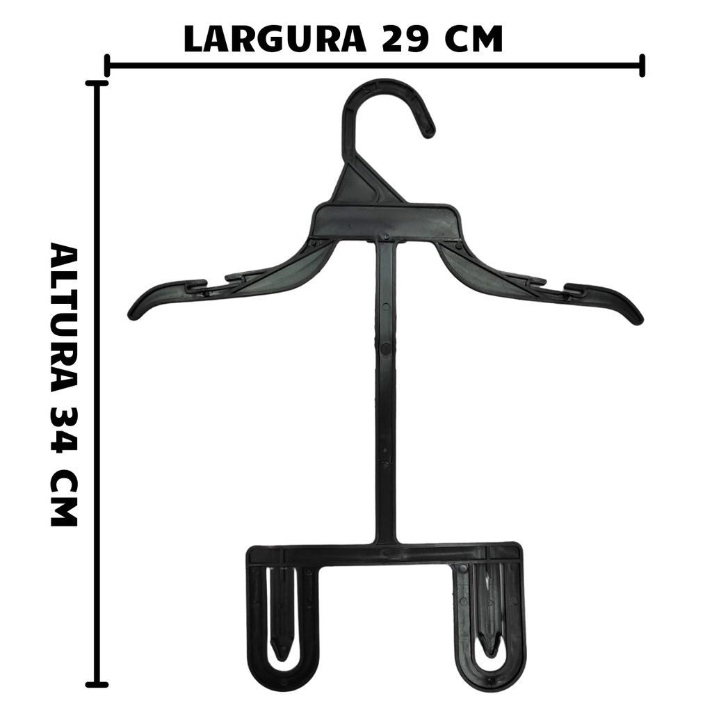 Cabide Com Adaptador Roupa Infantil Conjunto Bebê 50 Unidades Preto