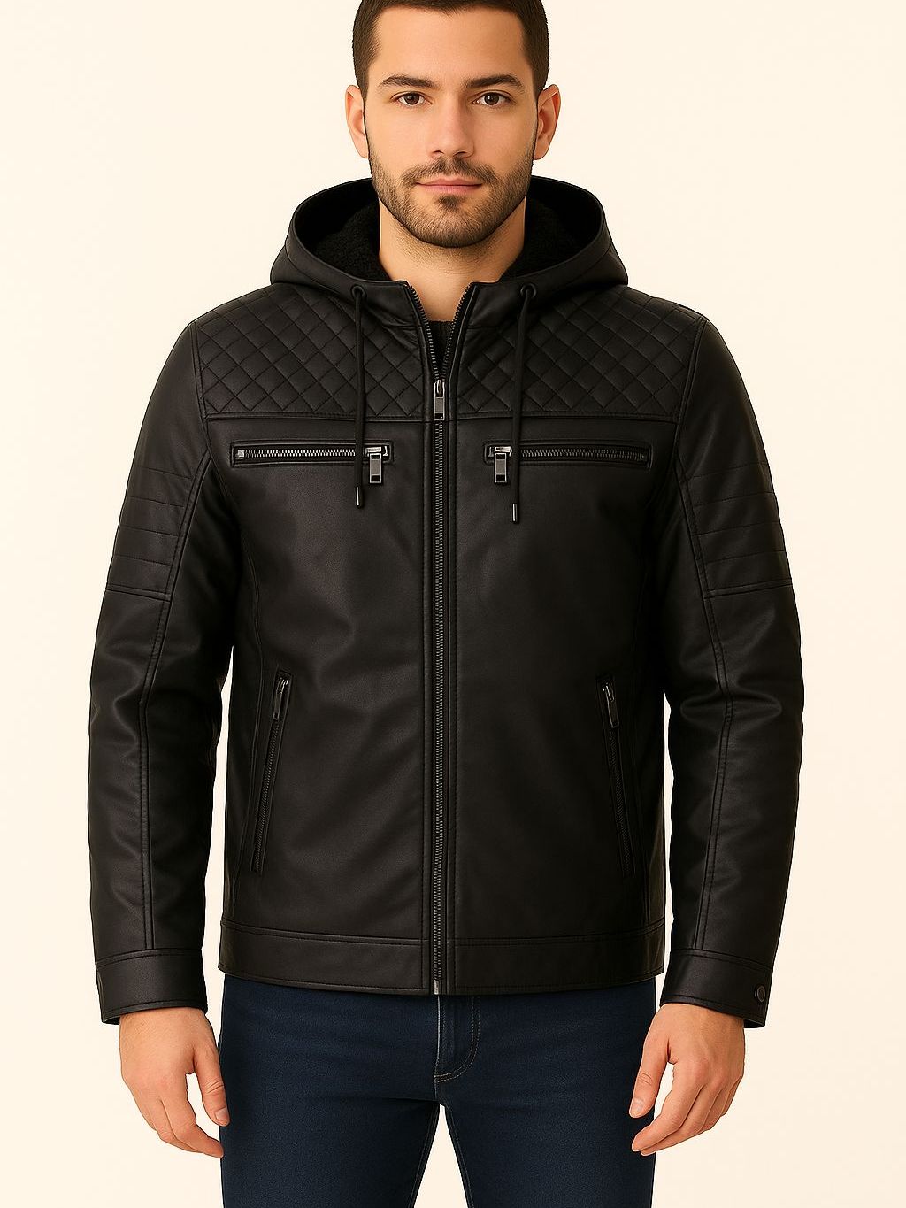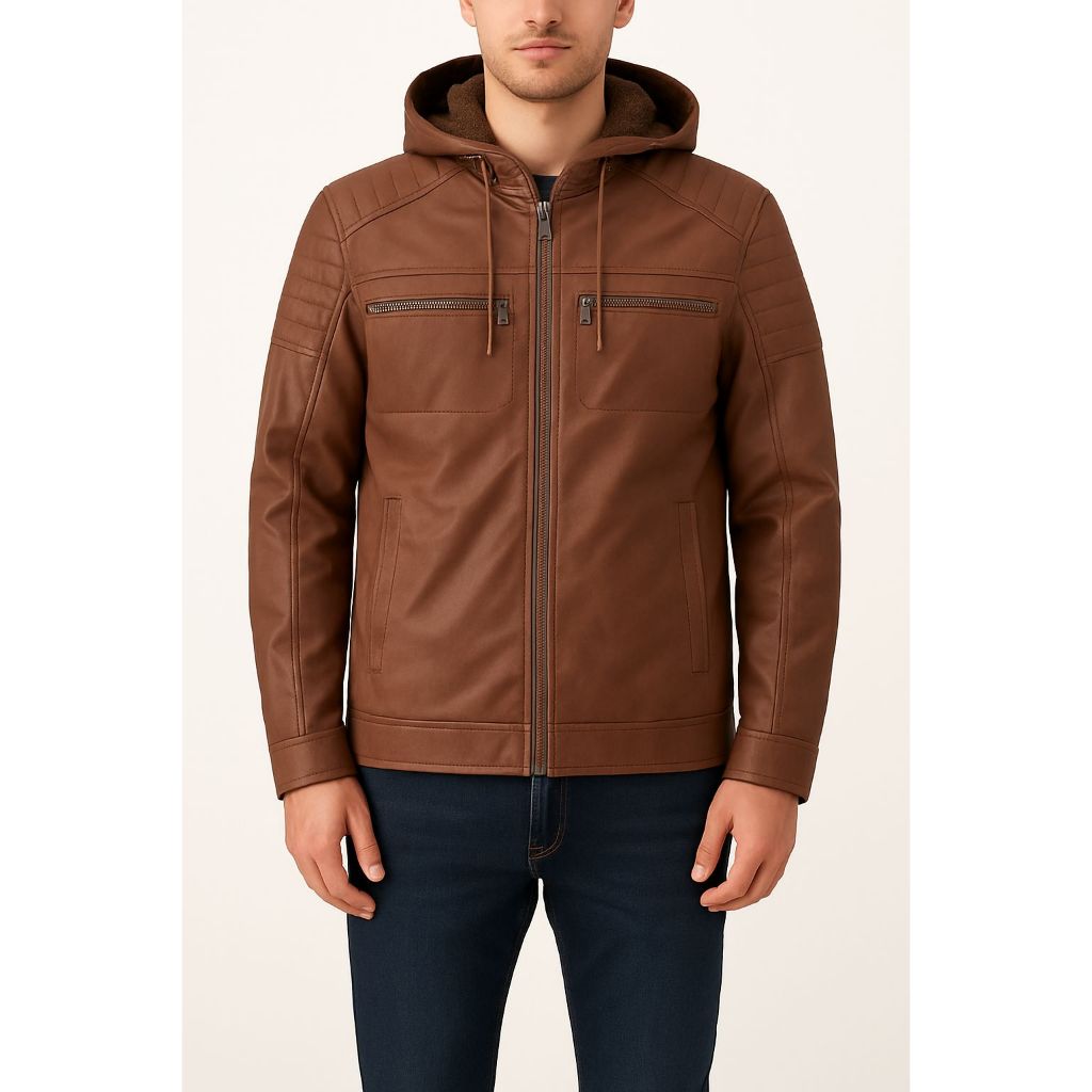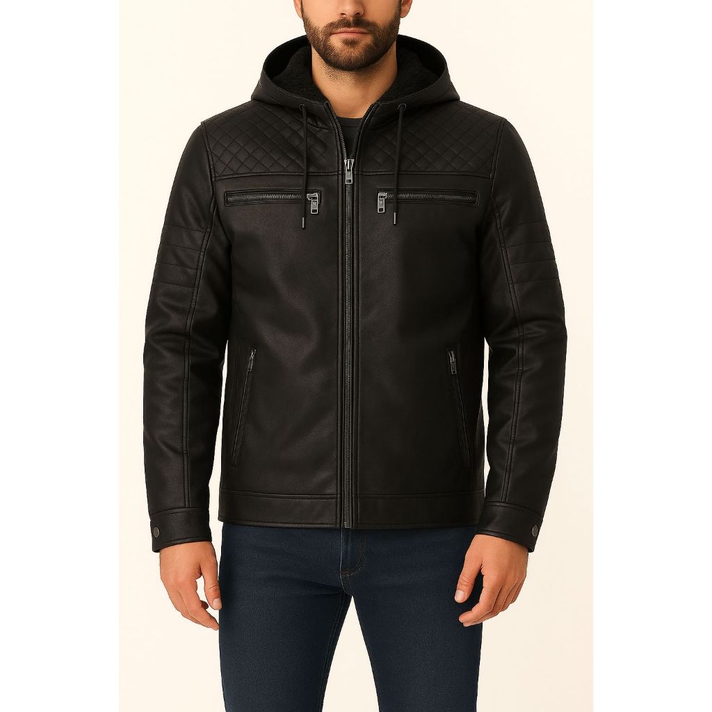 JAQUETA COURO MASCULINA MOTOQUEIRO FORRADA CAPUZ
