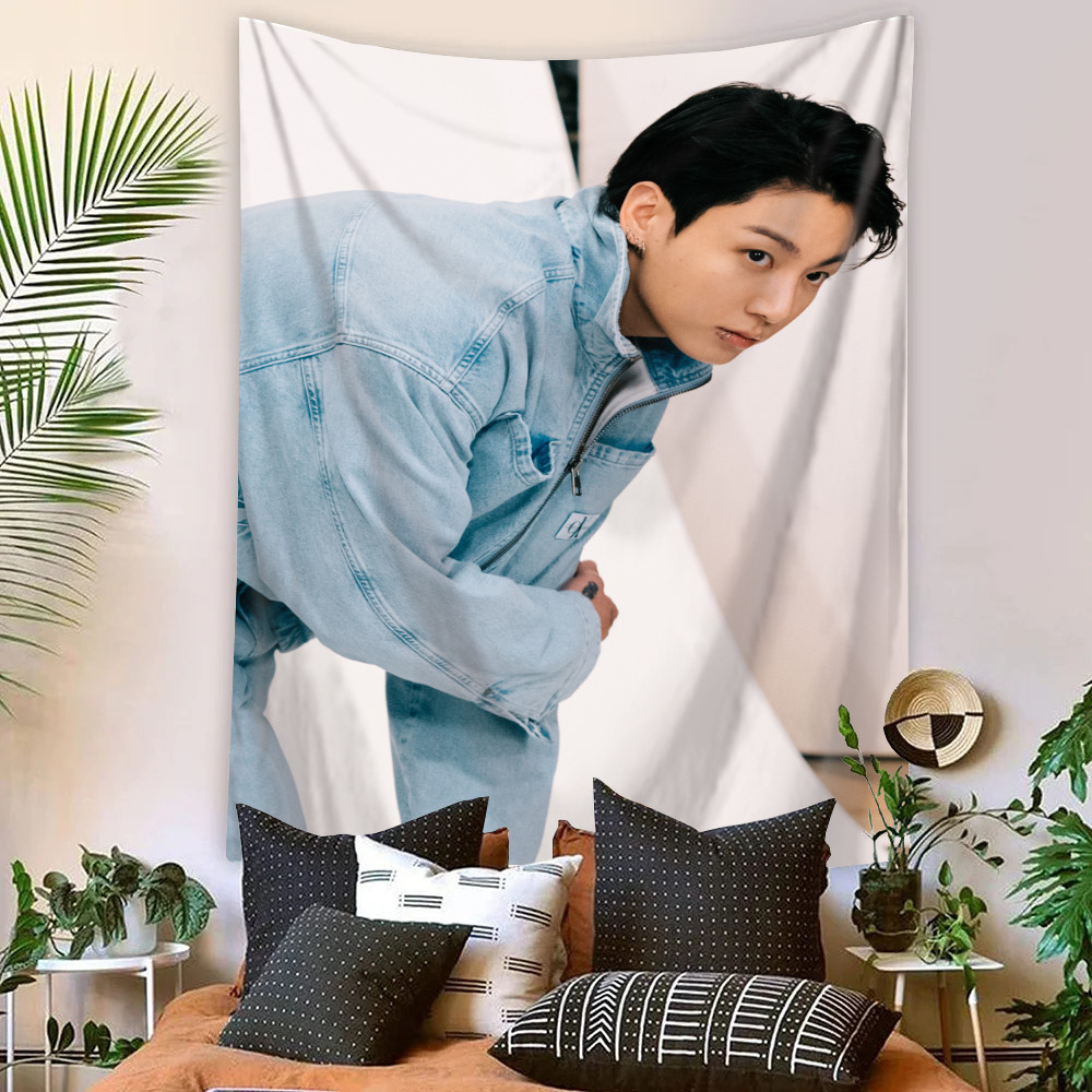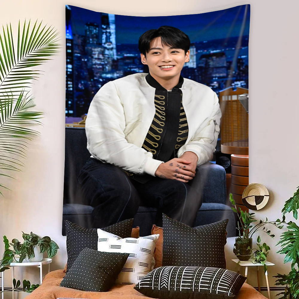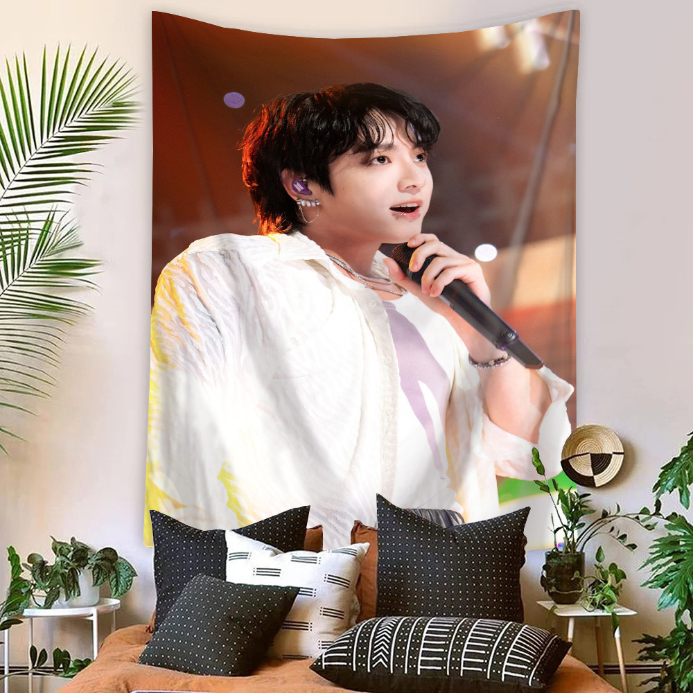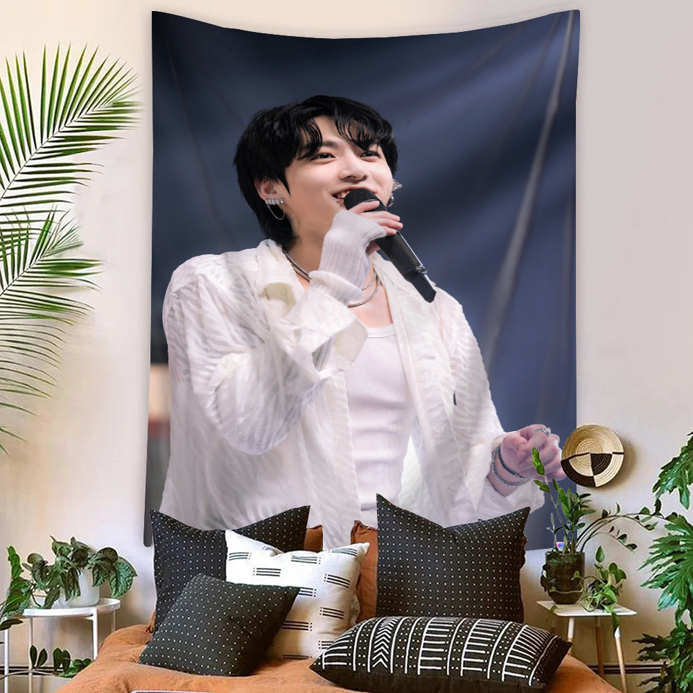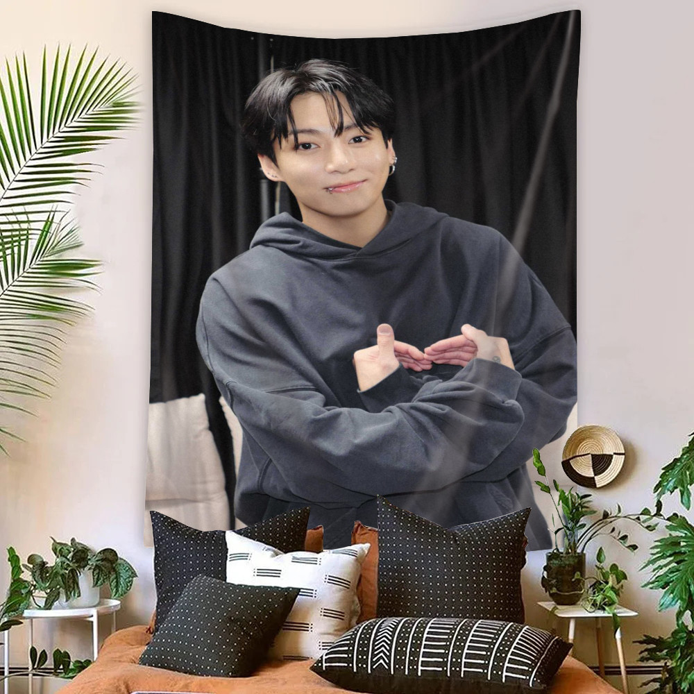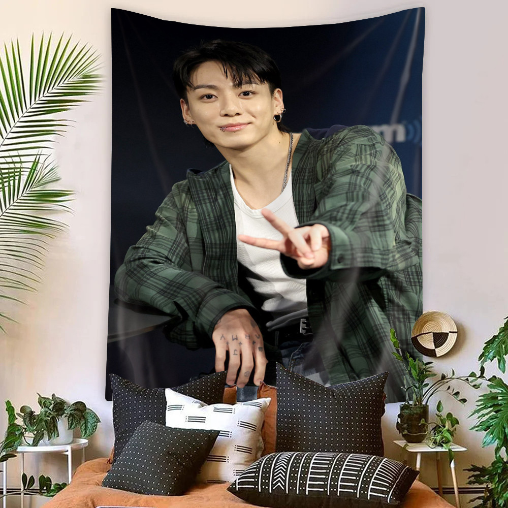 Kpop BTS Jungkook Tapeçaria De Parede Com Clipes Poliéster De Dormitório Decoração De Casa