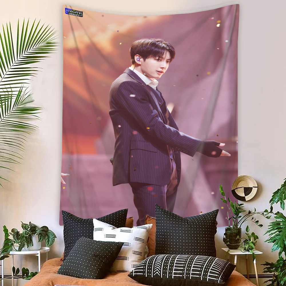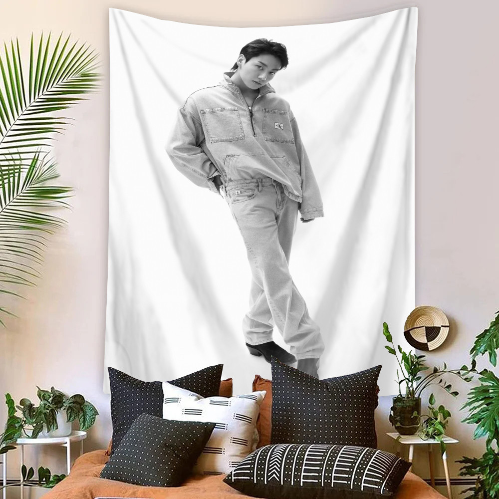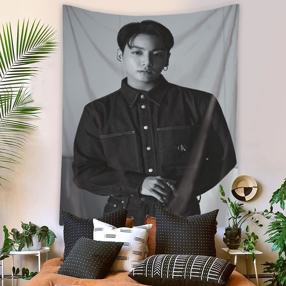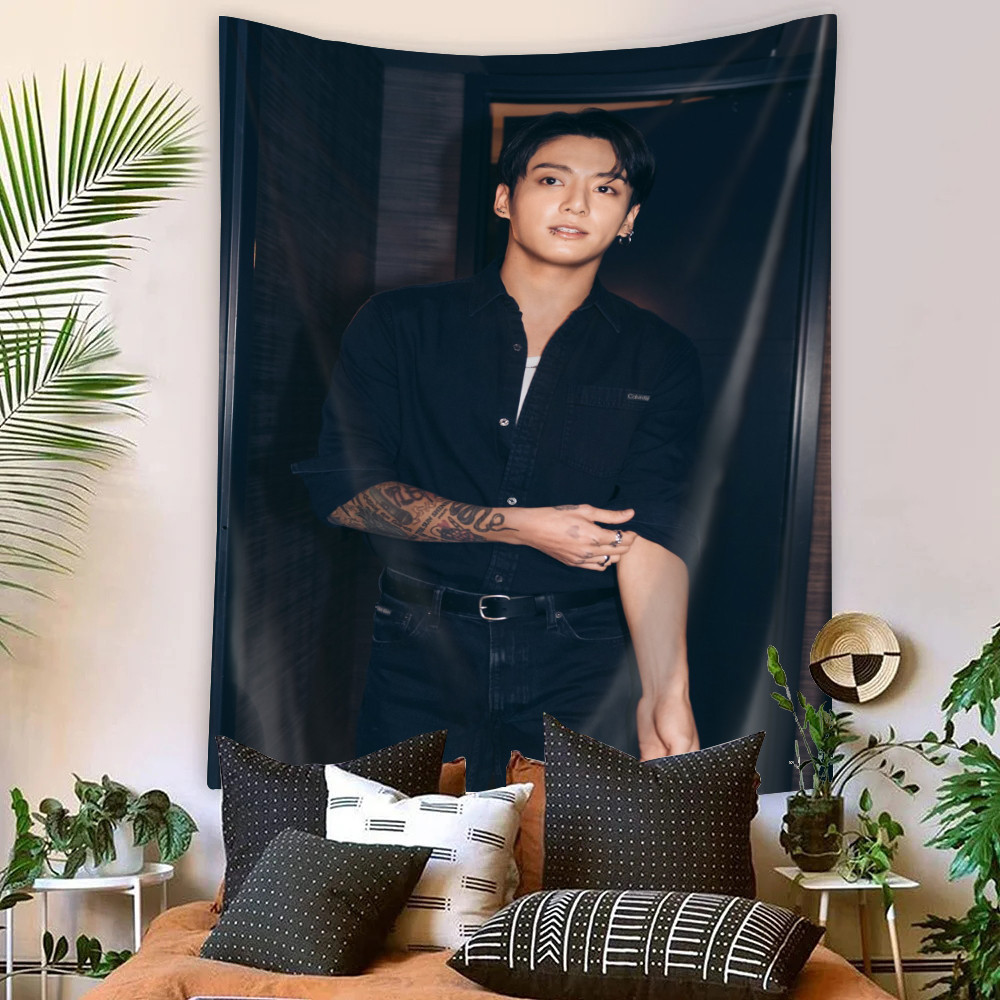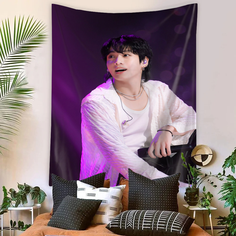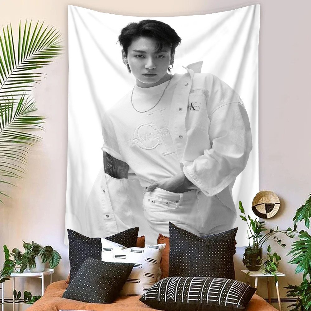 Kpop BTS Jungkook Tapeçaria De Parede Com Clipes Poliéster De Dormitório Decoração De Casa