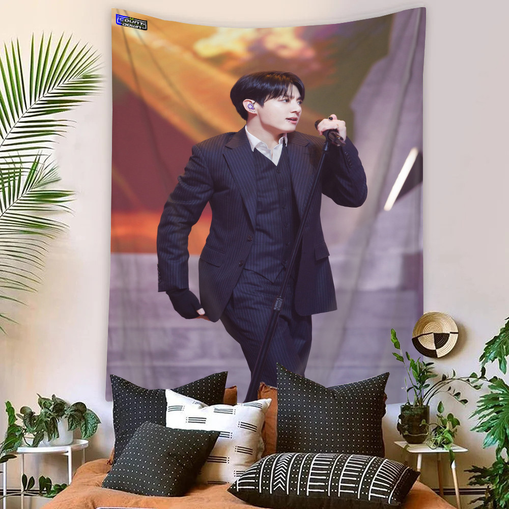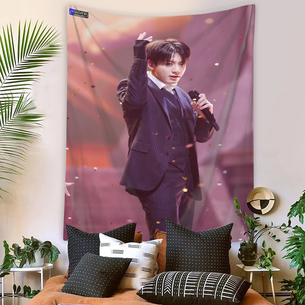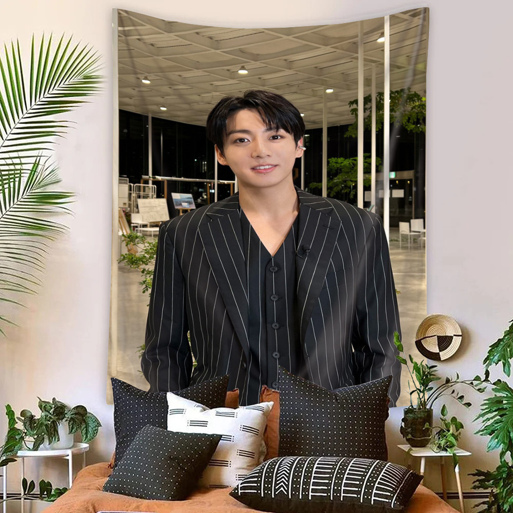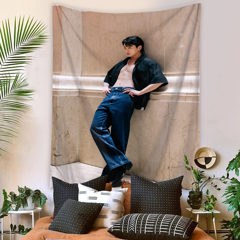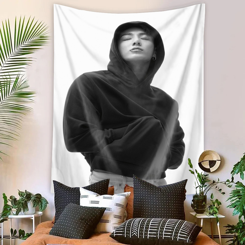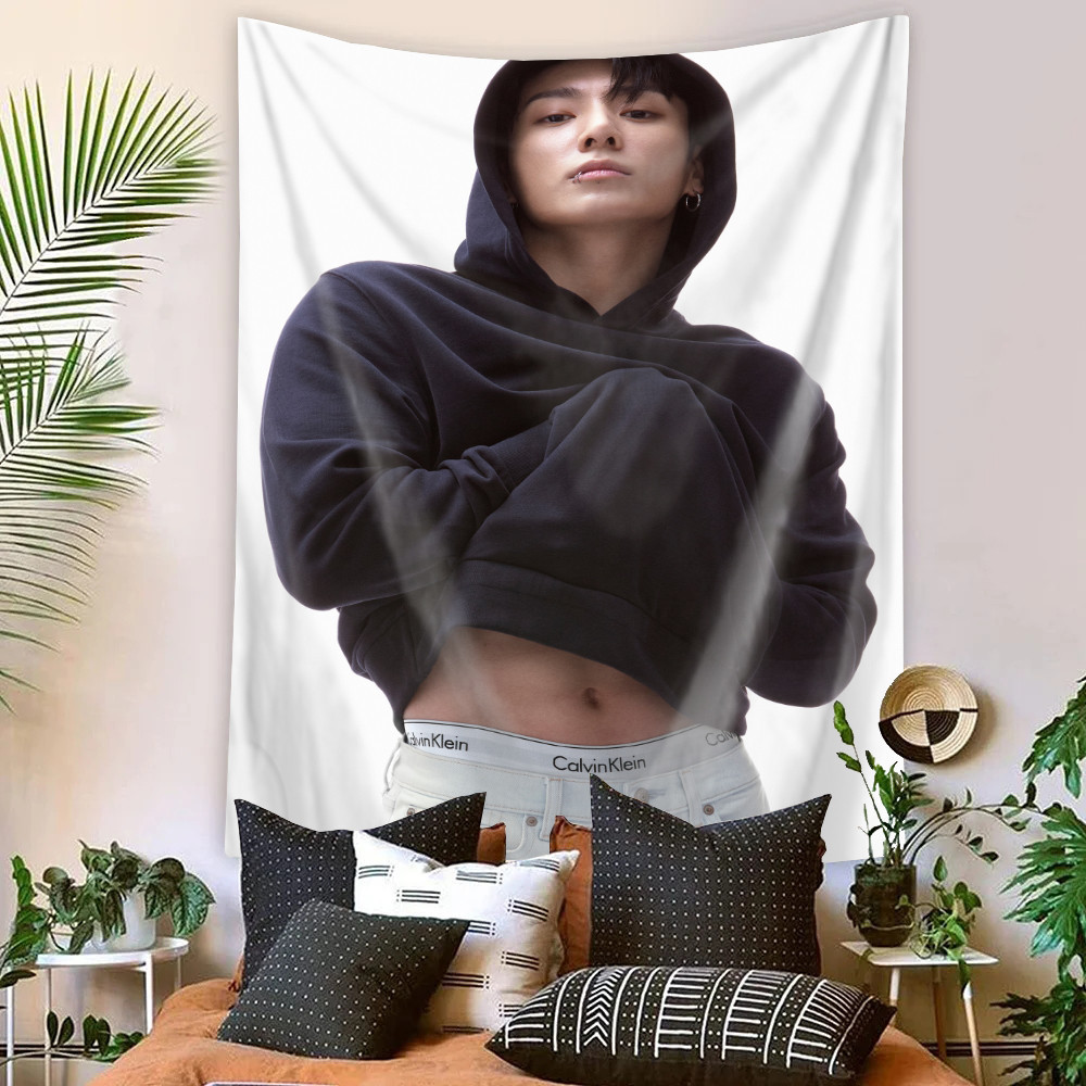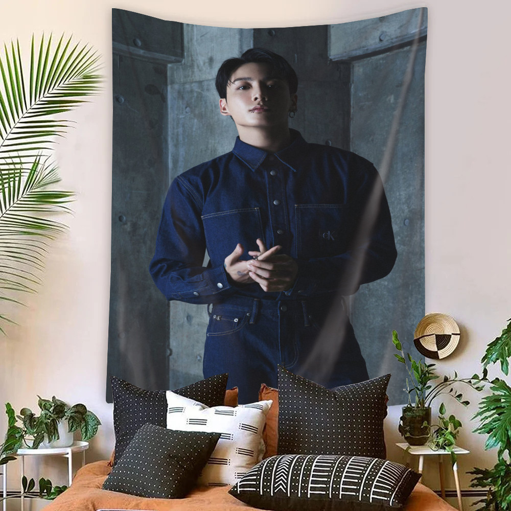 Kpop BTS Jungkook Tapeçaria De Parede Com Clipes Poliéster De Dormitório Decoração De Casa