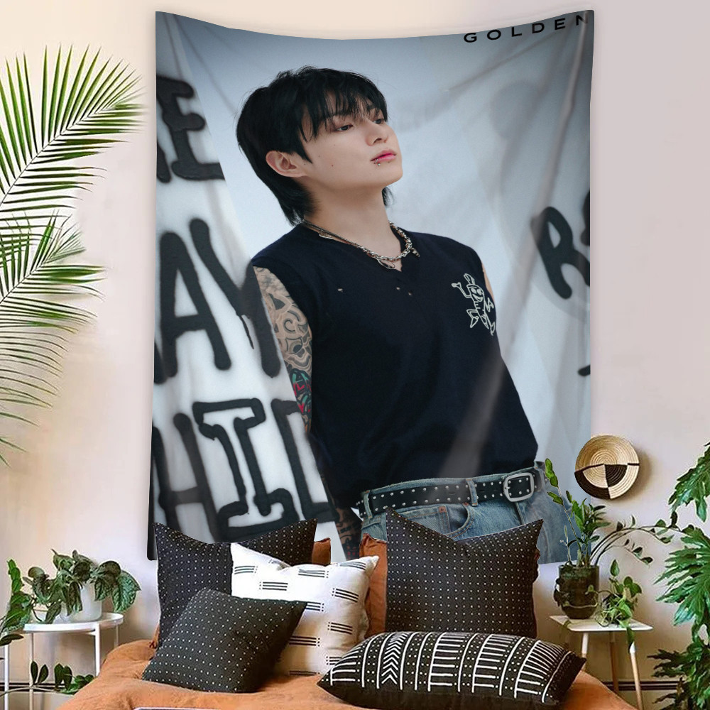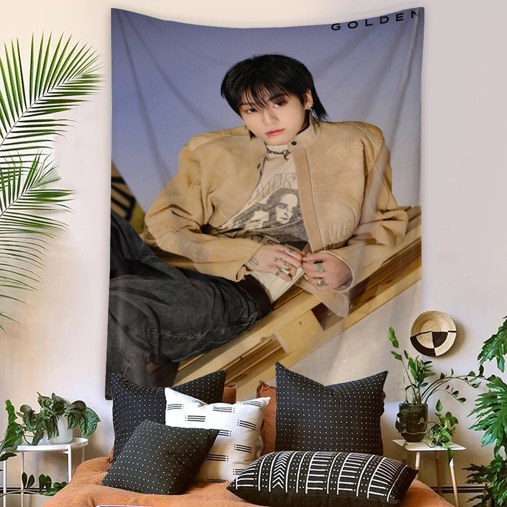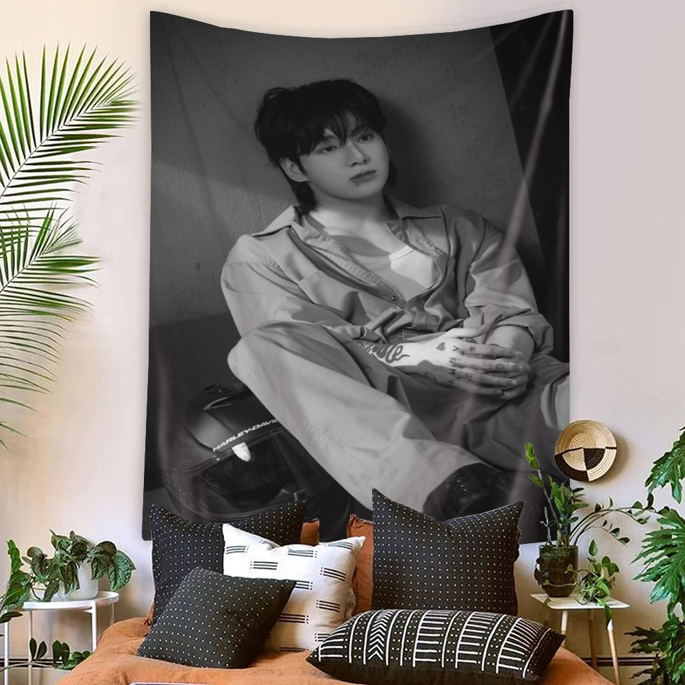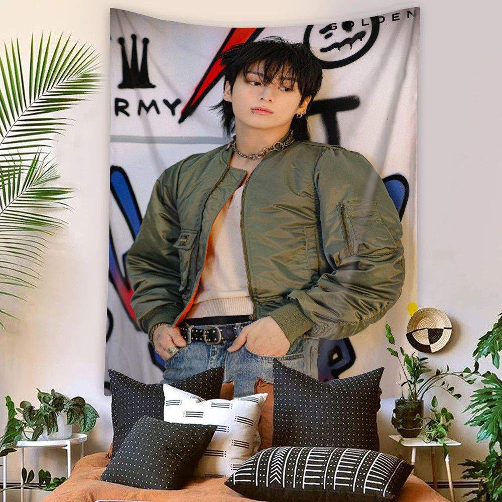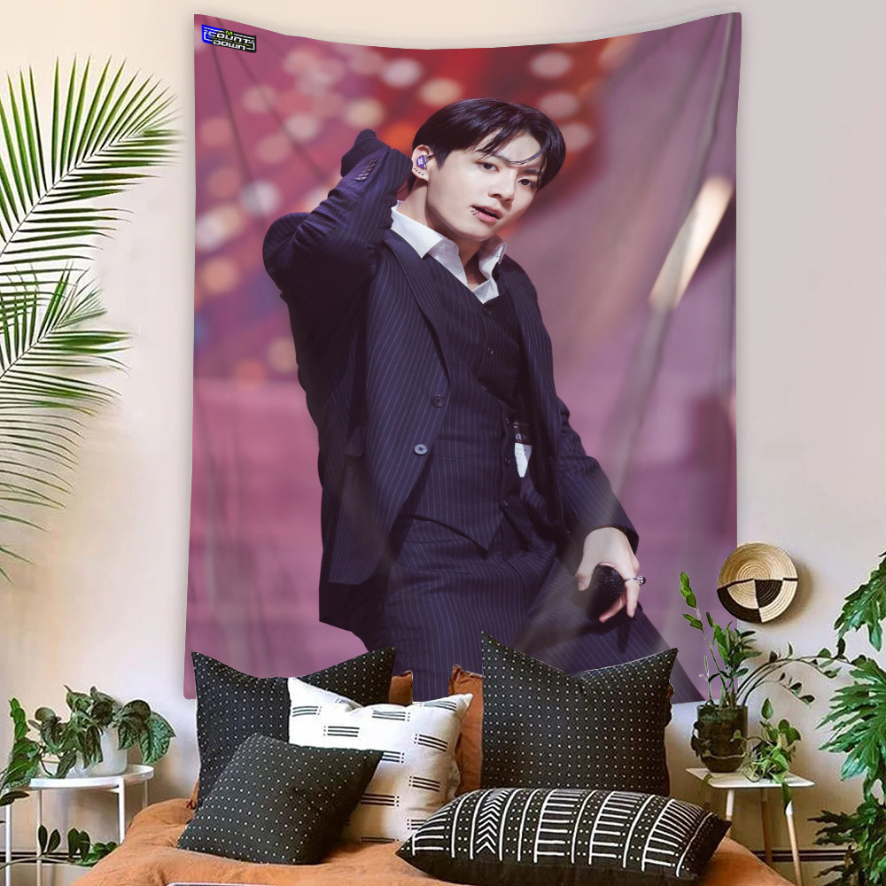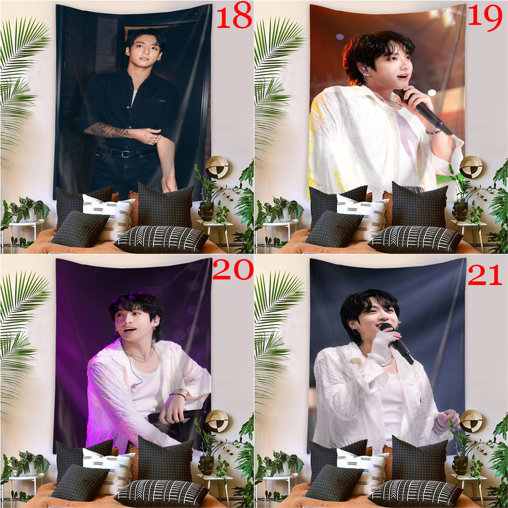 Kpop BTS Jungkook Tapeçaria De Parede Com Clipes Poliéster De Dormitório Decoração De Casa