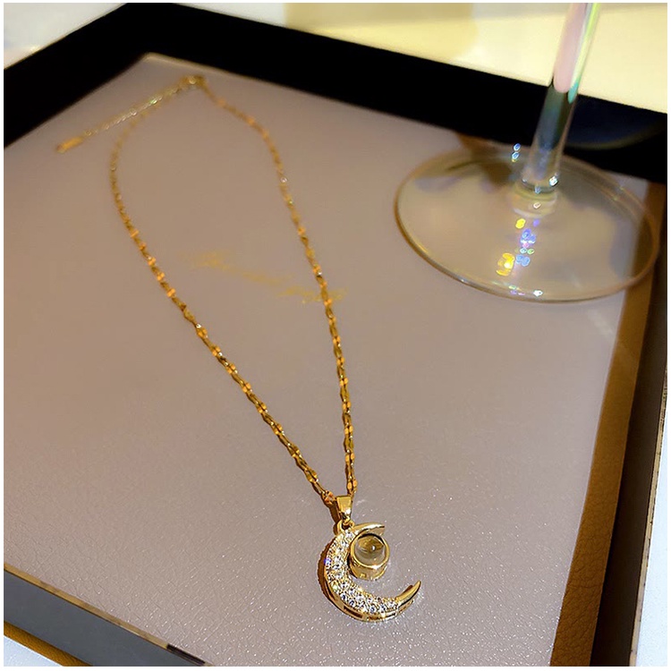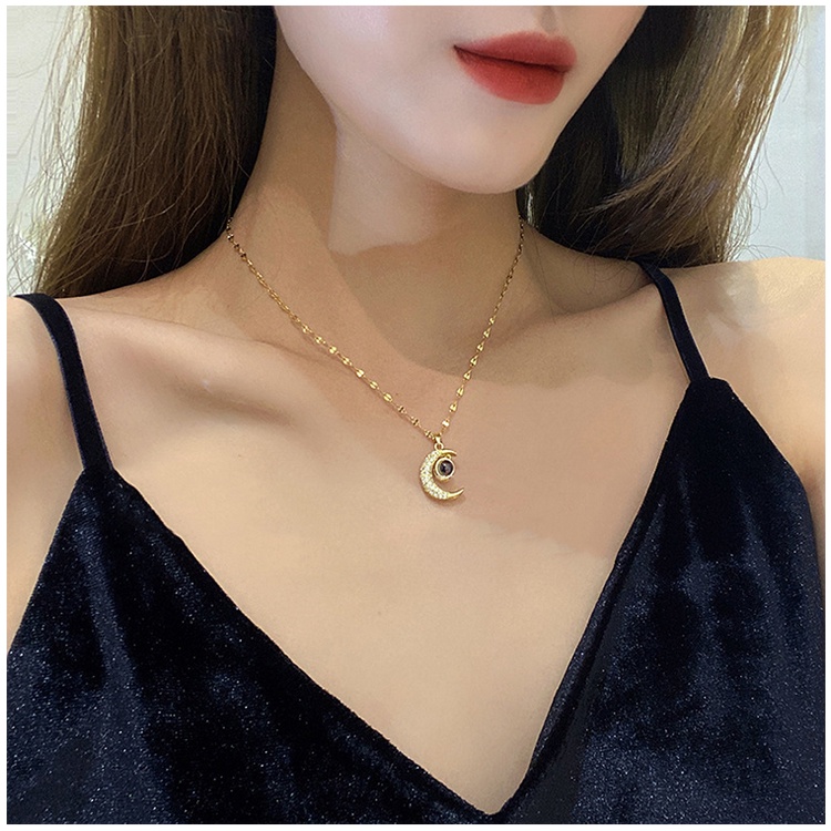 100 Línguas Eu Te Amo Colar Feminino De Clavícula Cadeia De Projeção Da Lua De Titânio Acessórios Presente