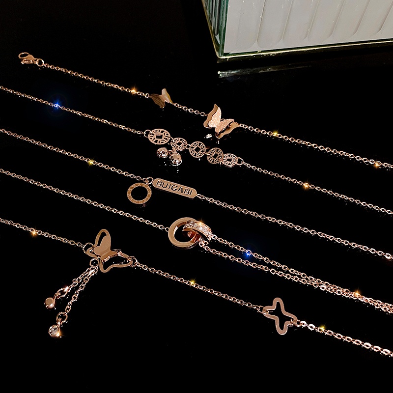 Tornozeleira De Aço Titânio Clover Anklet Fêmea Borboleta Inoxidável Presente De Jóias