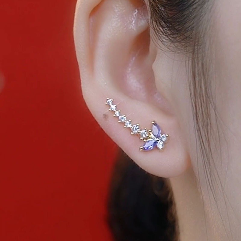 Super Flash Roxo Zircão Borboleta Orelha Linha Brincos Femininos Requintados High-end Personalizados Presentes Por Ataca