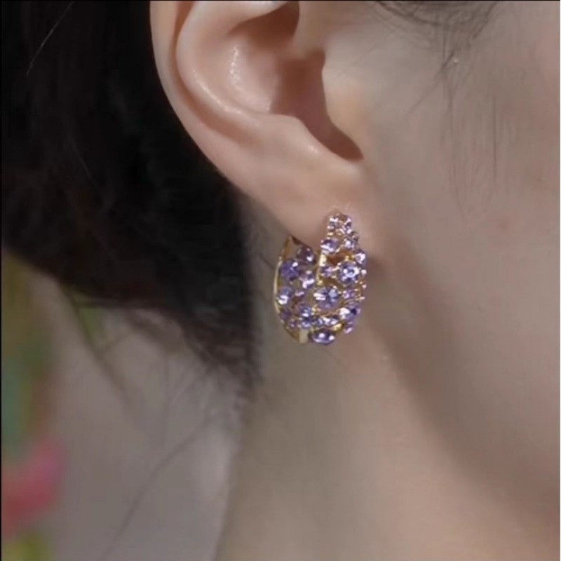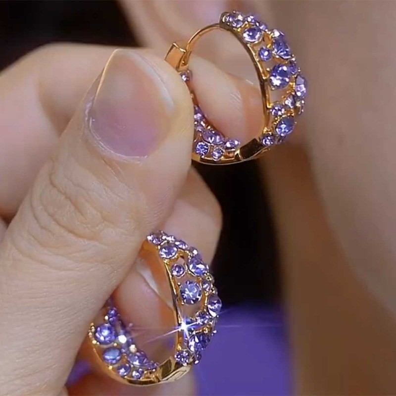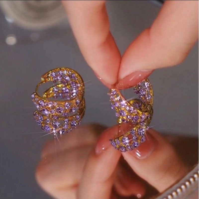 2025 Novo Temperamento Elegante Cheio De Diamante Roxo Círculo Brincos Design De Luxo Requintados Femininos