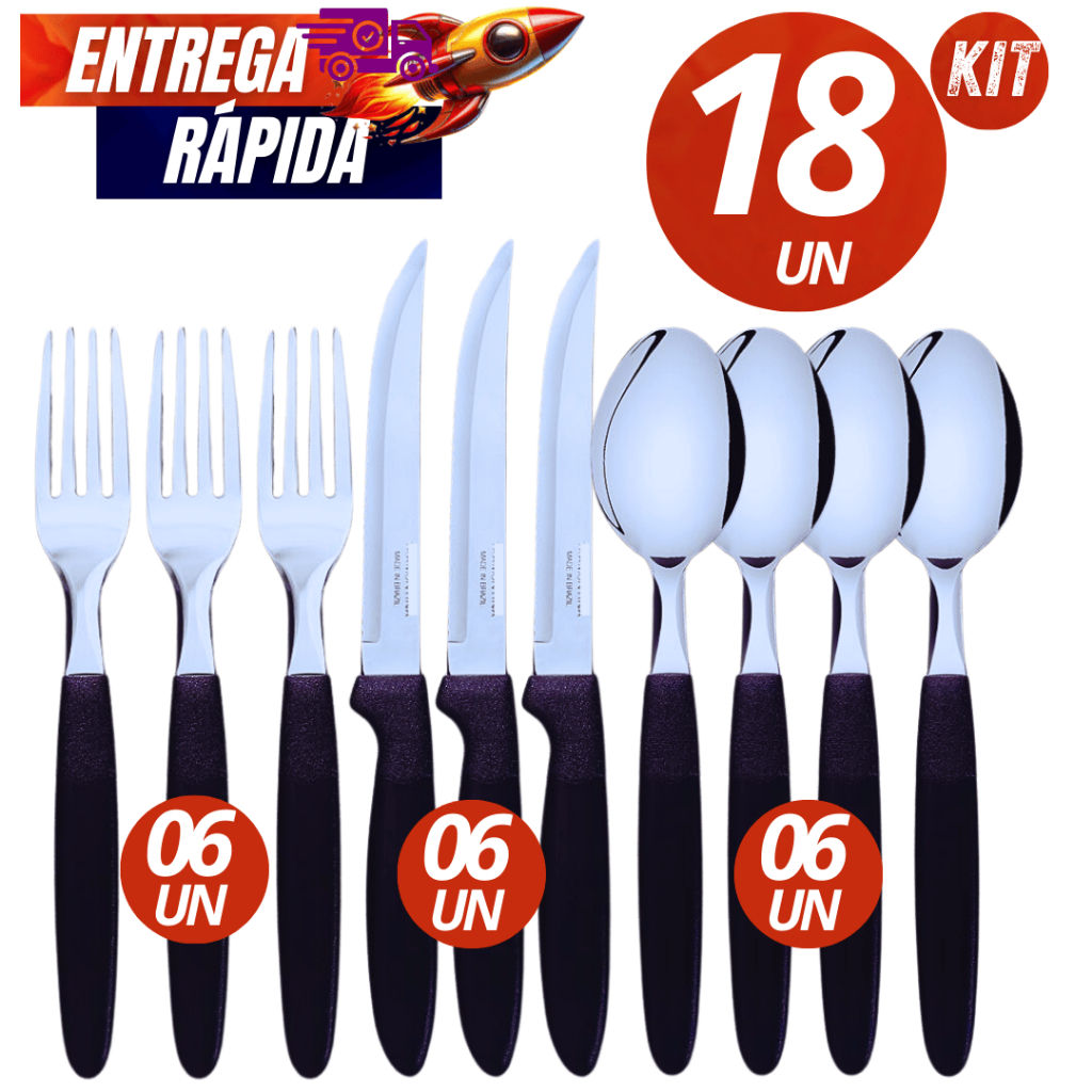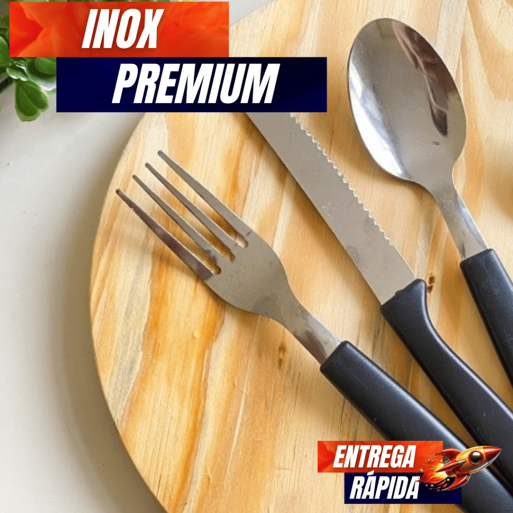 Jogo De Talheres 36/18 Peças - Garfo Faca Colher Inox Com Cabo De Plástico Premium