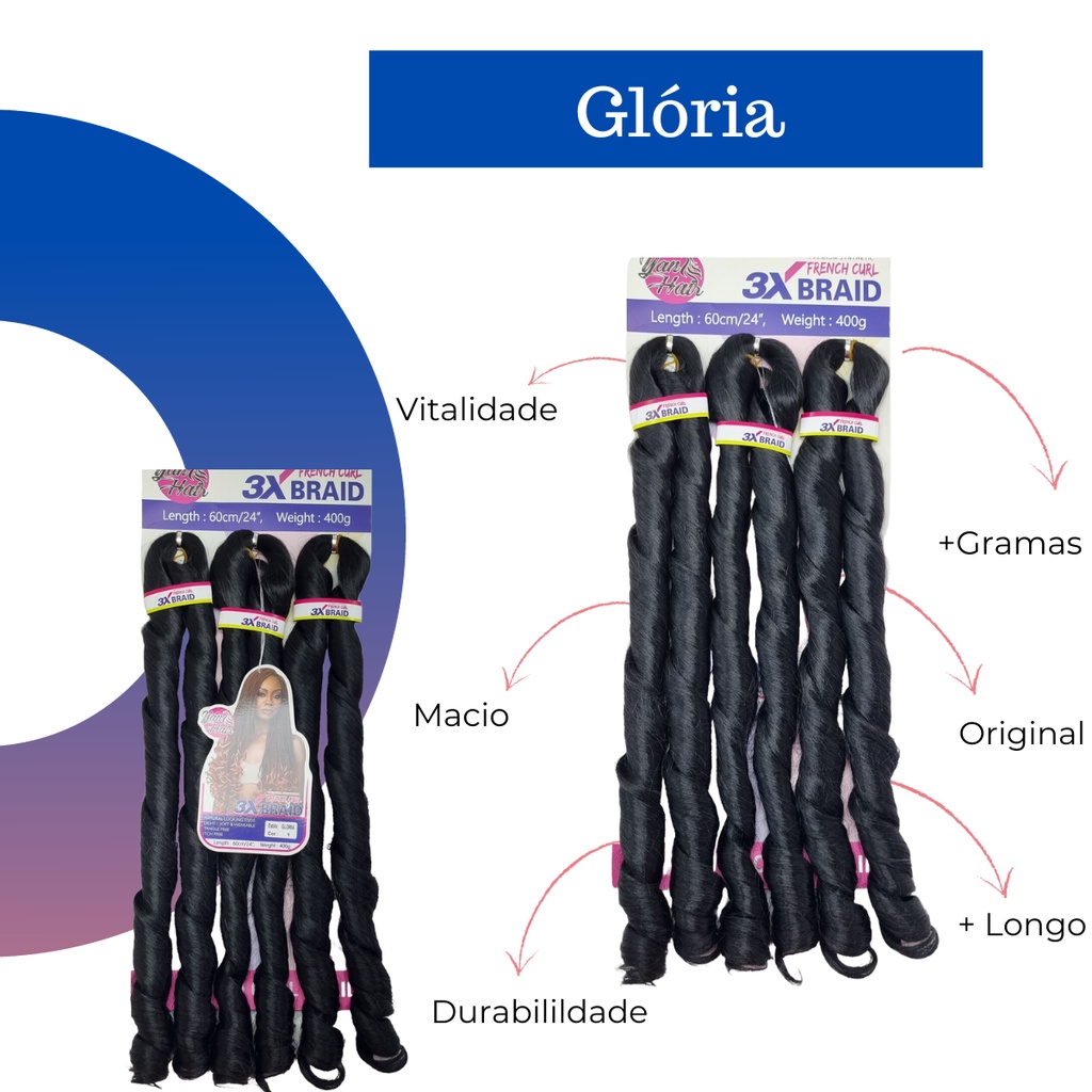 Cabelo Jumbo Liso Ondulado French Curl Crochet Braid 400gr