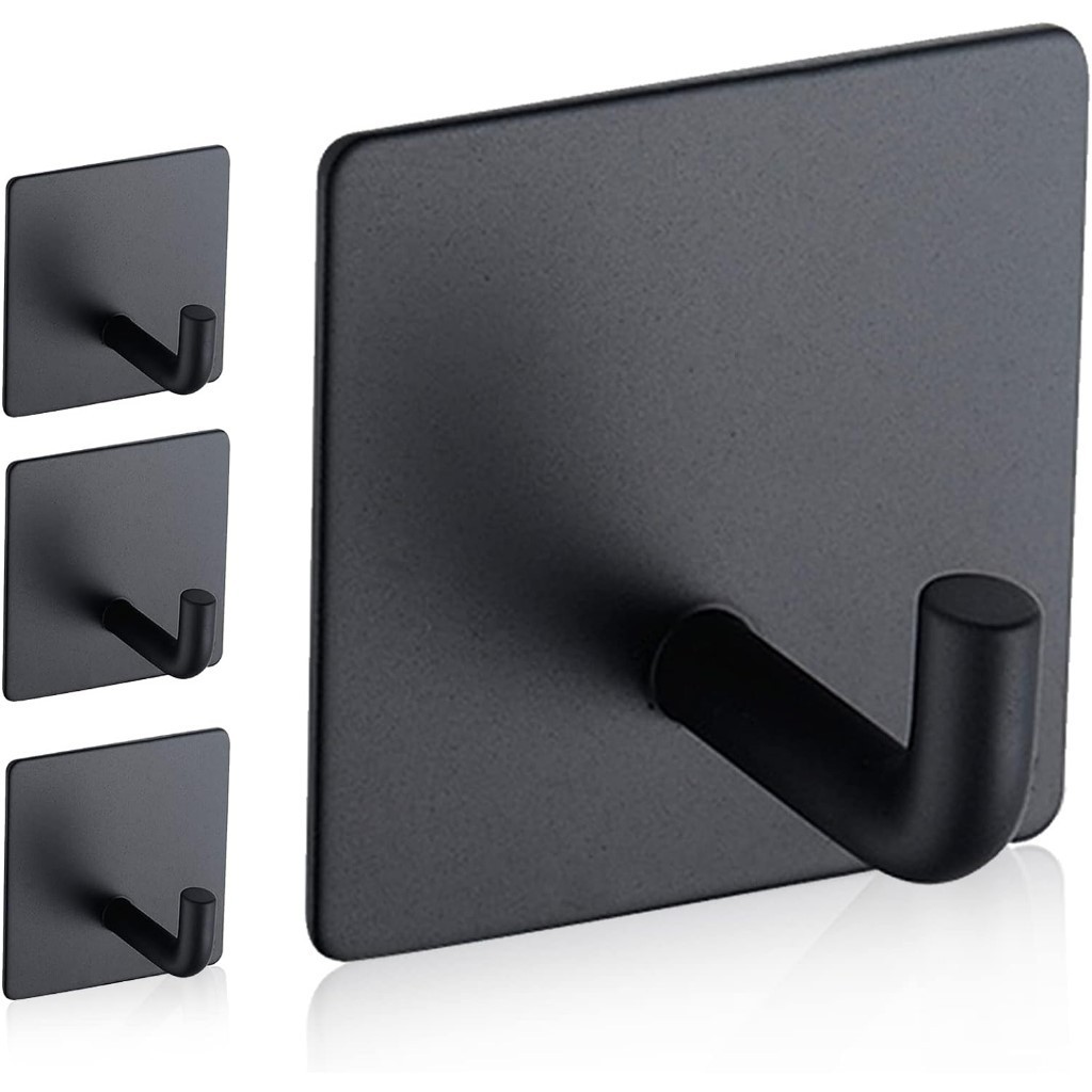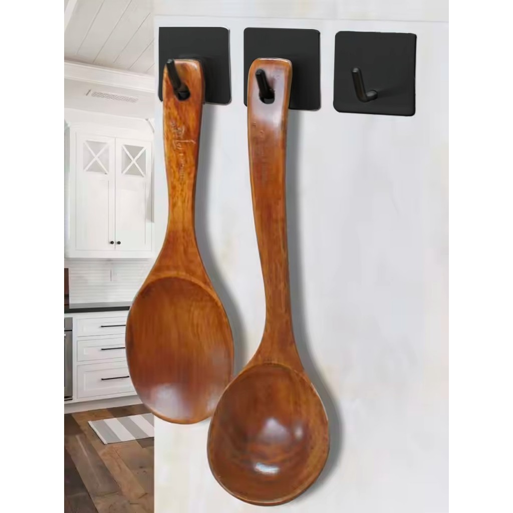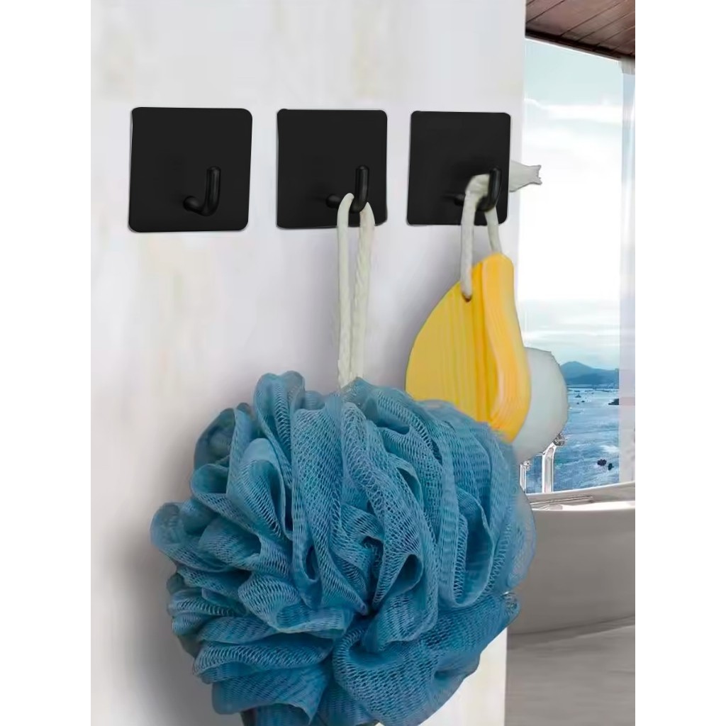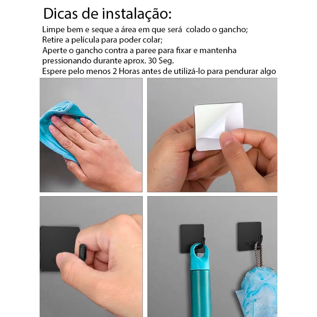 Kit 6 Ganchos Adesivos Preto Metal - Cabideiro de Parede Cozinha e Banheiro