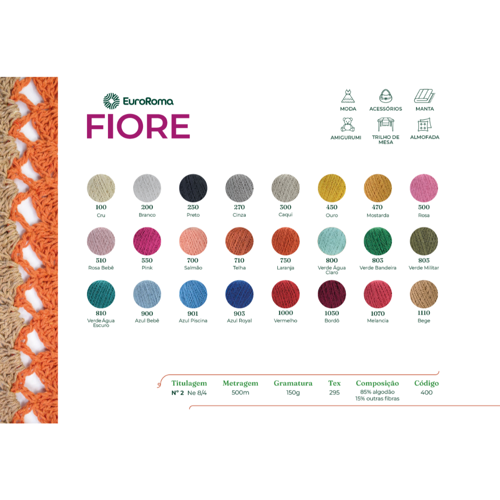 Linha Fiore número 2 da Euroroma, espessura compatível com fio Anne. Crochê, Tricô, Amigurumi.