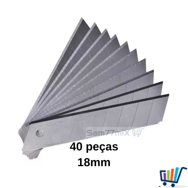 Kit Jogo Lamina Para Estilete Largo 18mm Com 10,20,30,40 e 50 Peças