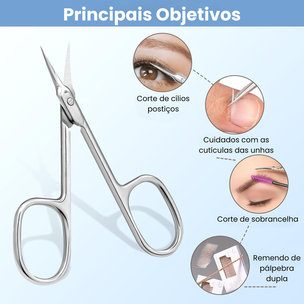 Tesoura De Cutícula Aço Inoxidável Fina Para Manicure Sobrancelha Cílios