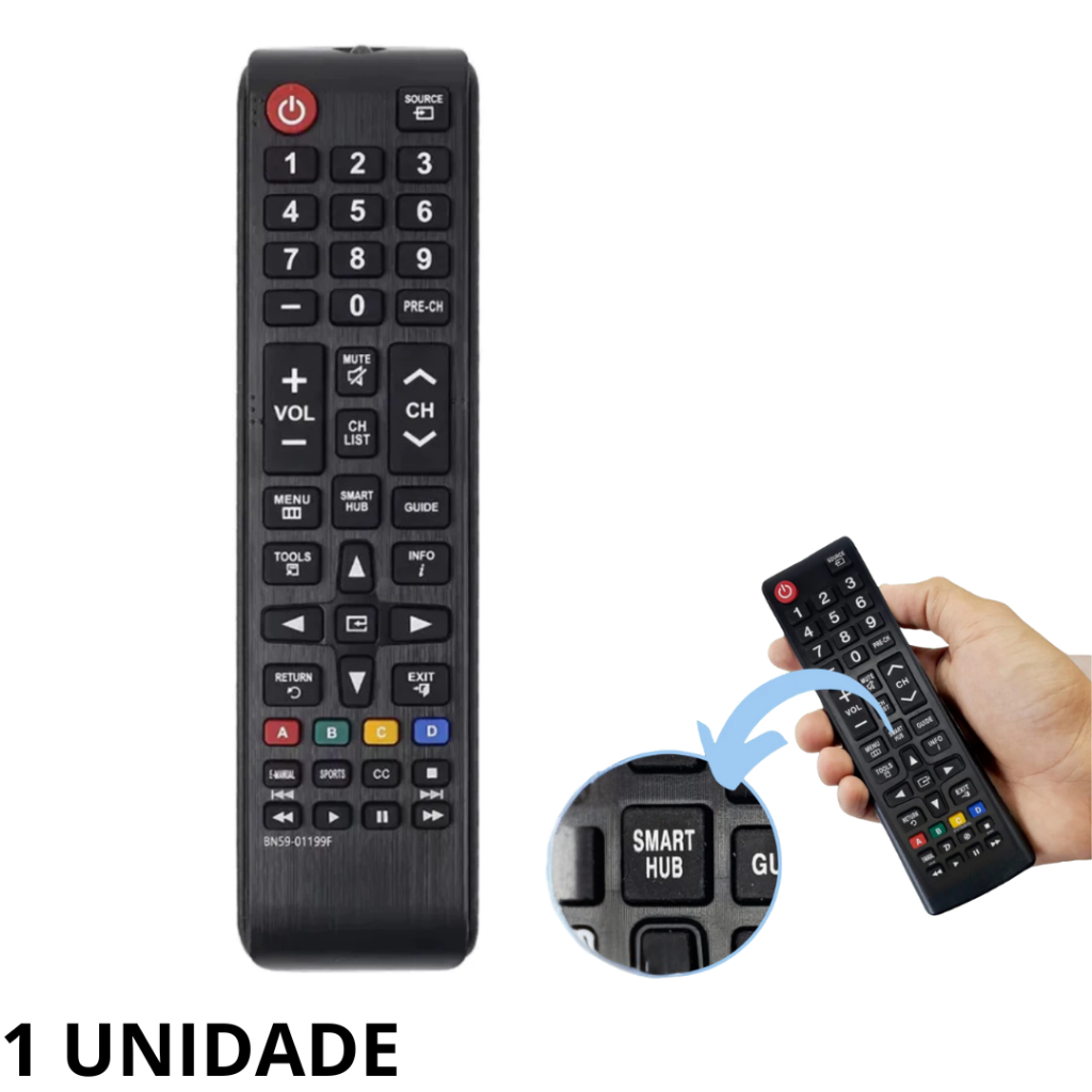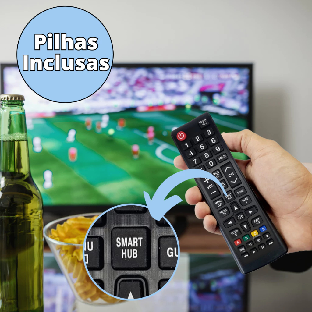 Controle Remoto Compatível Com Samsung TV Smart Hub + 2 Pilhas