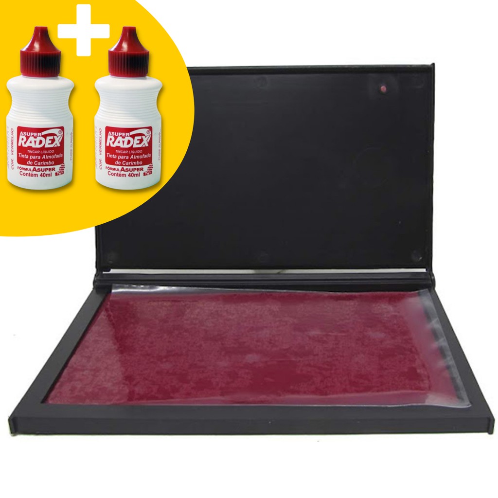 Kit Almofada Carimbo Grande N4 c/ 4 Opções de Cores 16,8 x 9,8 cm com 2 Tintas Extras
