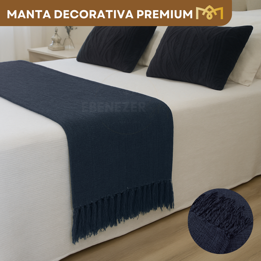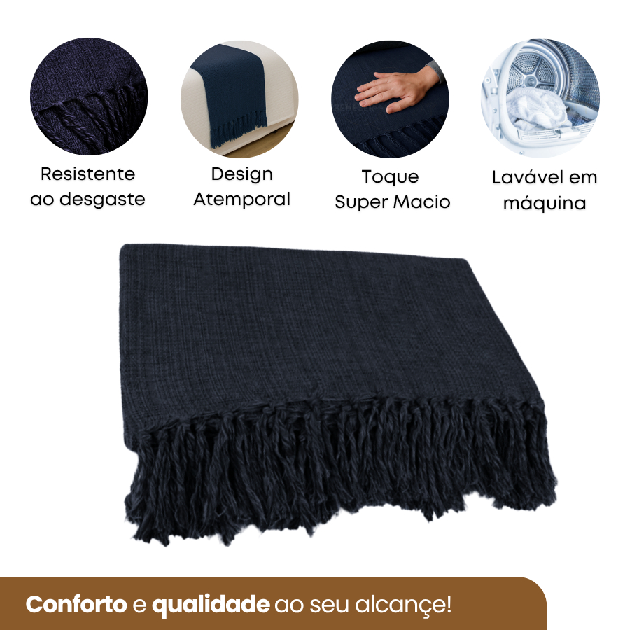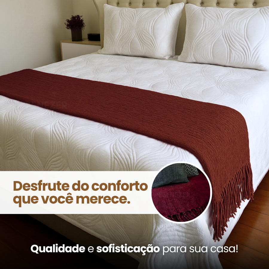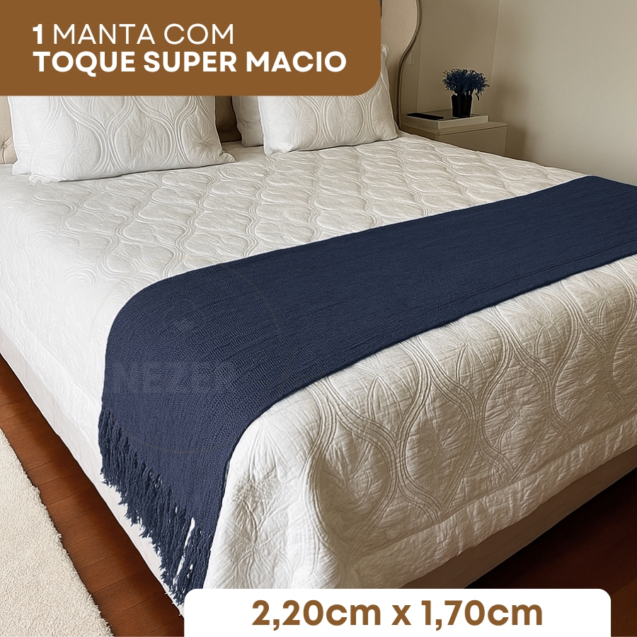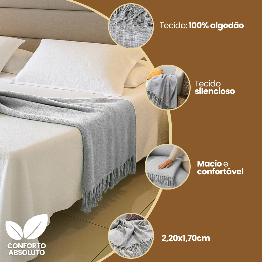 Manta Peseira Decorativa Cama e Sofá 2,20 x 1,70cm Algodão Confortável Toque Macio Luxo Premium