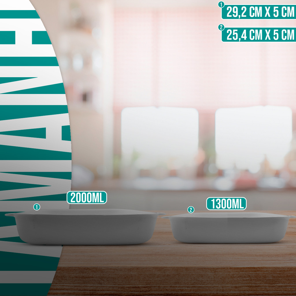 2 travessa retangular refratária 2000ML 1300ml porcelana branco marinex assadeira oxford forma