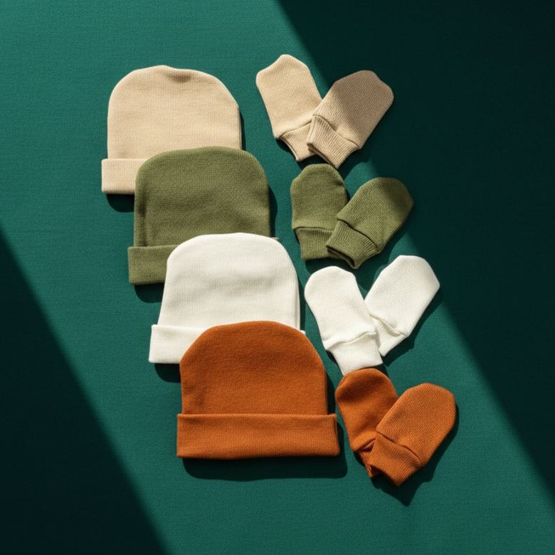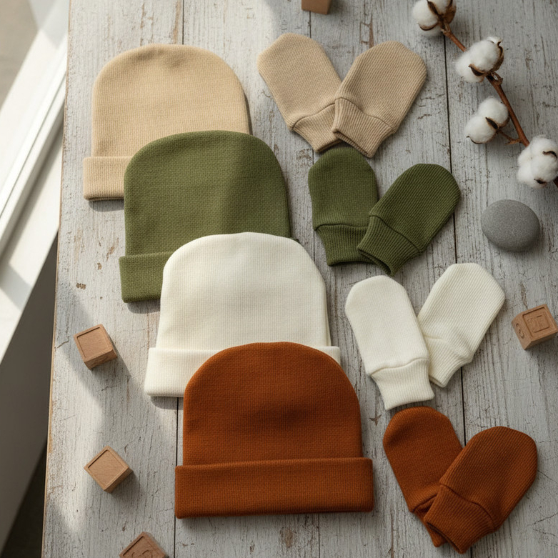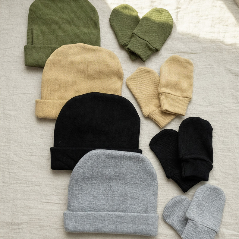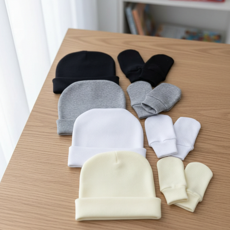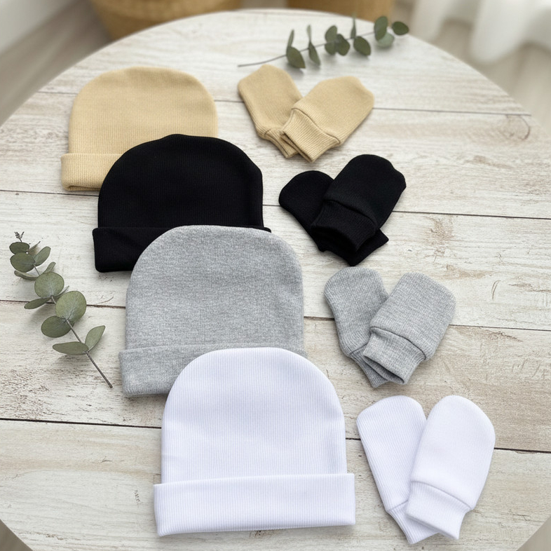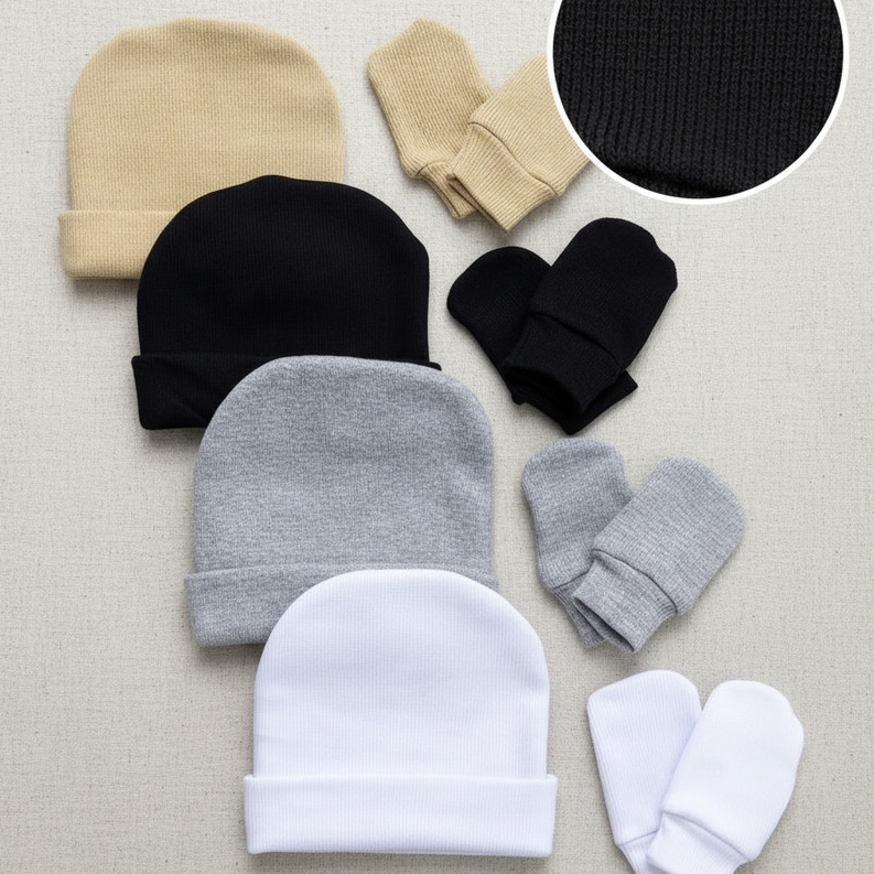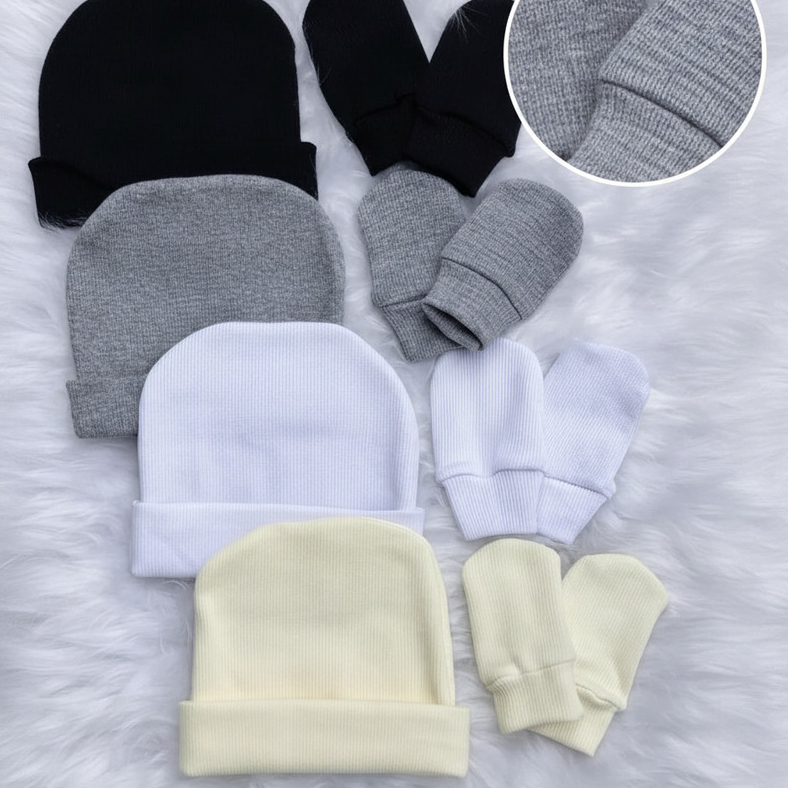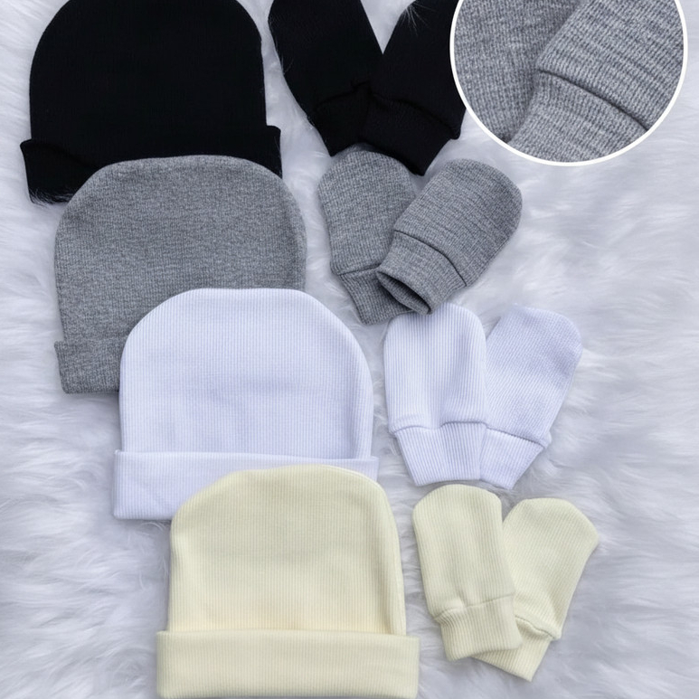 Kit 4 Touca de Bebê RN 4 Toucas + 4 Pares Luva RecémNascido Maternidade Enxoval Baby Algodão Premium