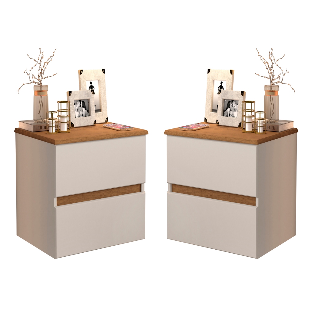 Kit 2 Mesas De Cabeceira Tóquio 30 Suspenso 2 Gavetas