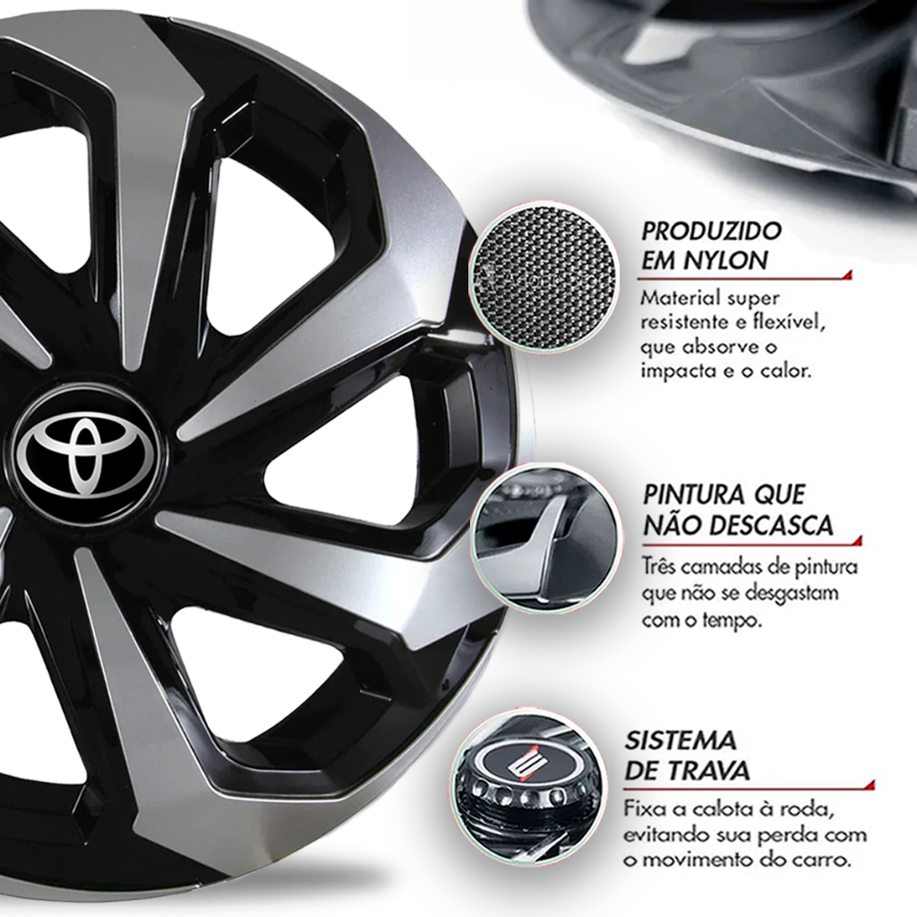 Jogo Calota Spider Black Silver Aro 14 Toyota Etios Corolla