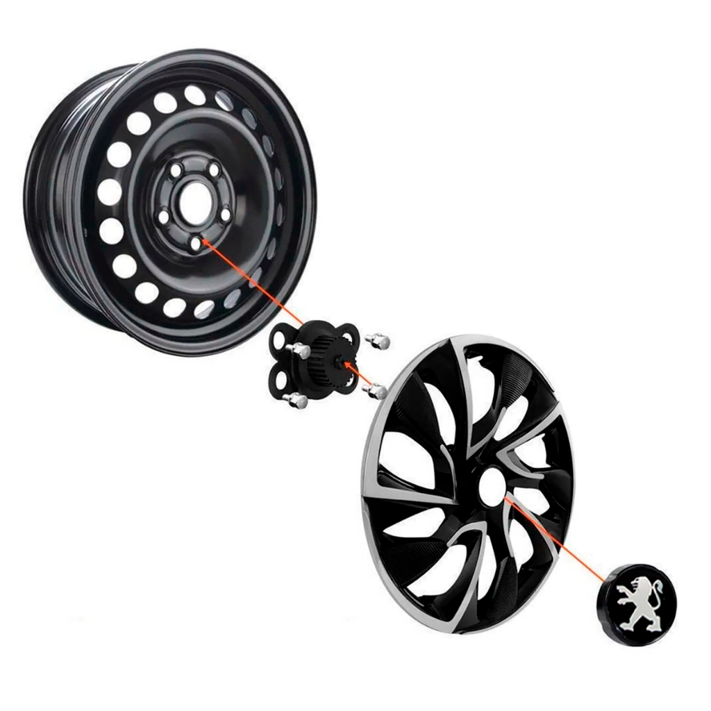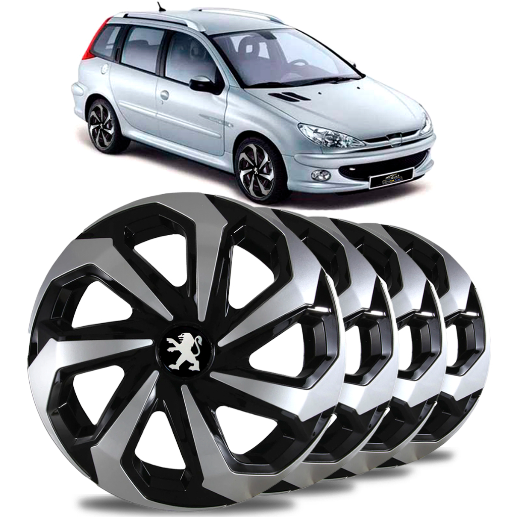 Jogo 4 Calota Black Silver Aro 14 Peugeot 207 307 206 Sw