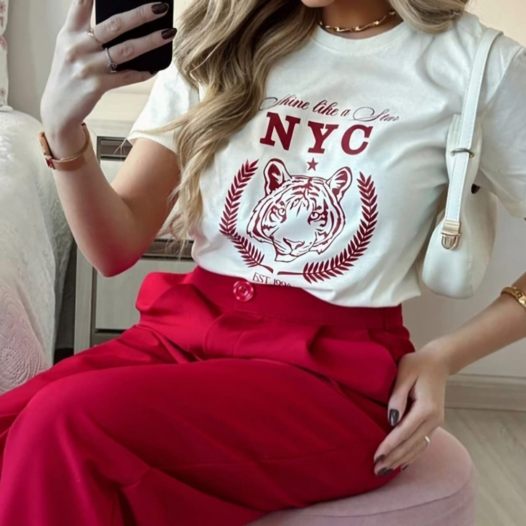 Camiseta Feminina Estampada 100% Algodão