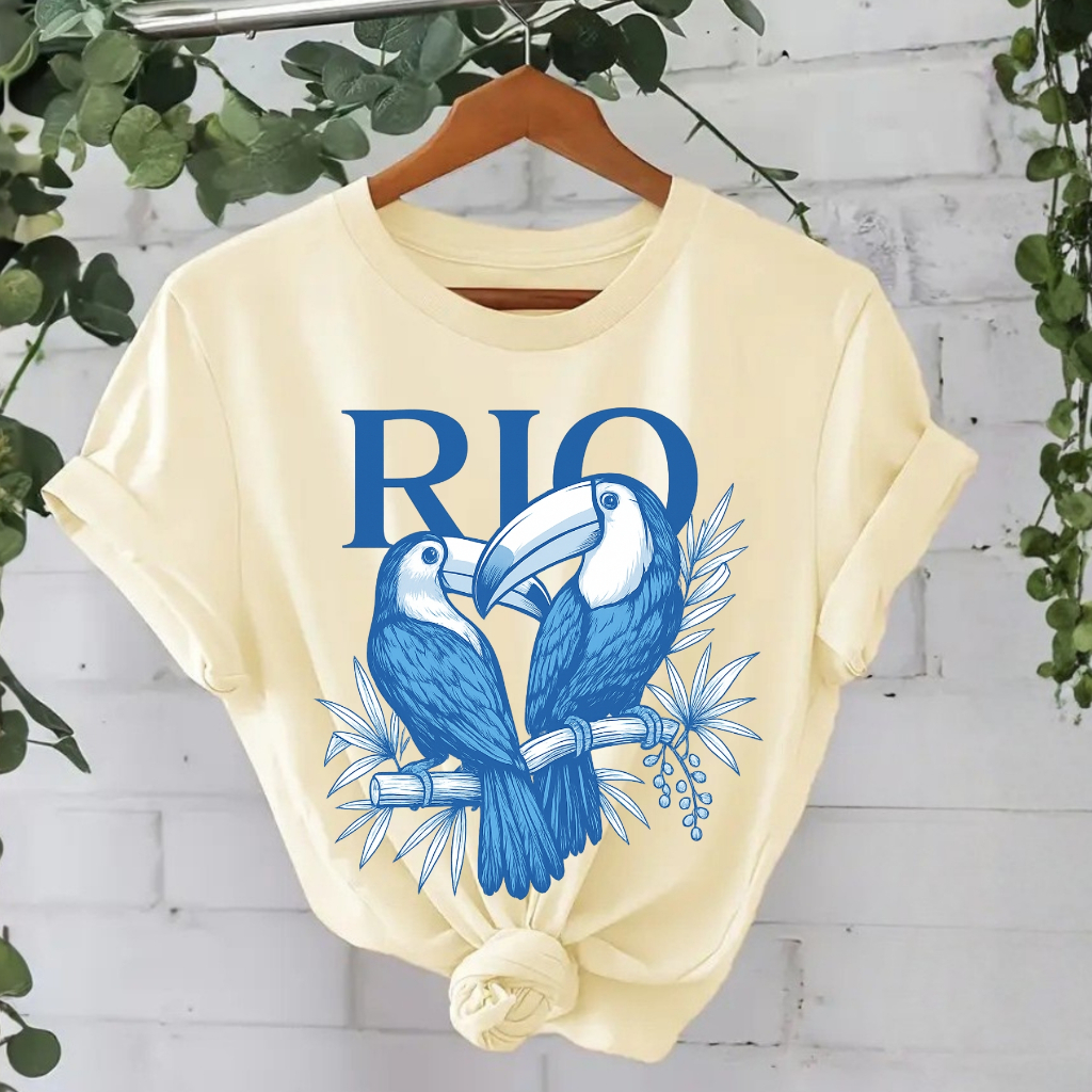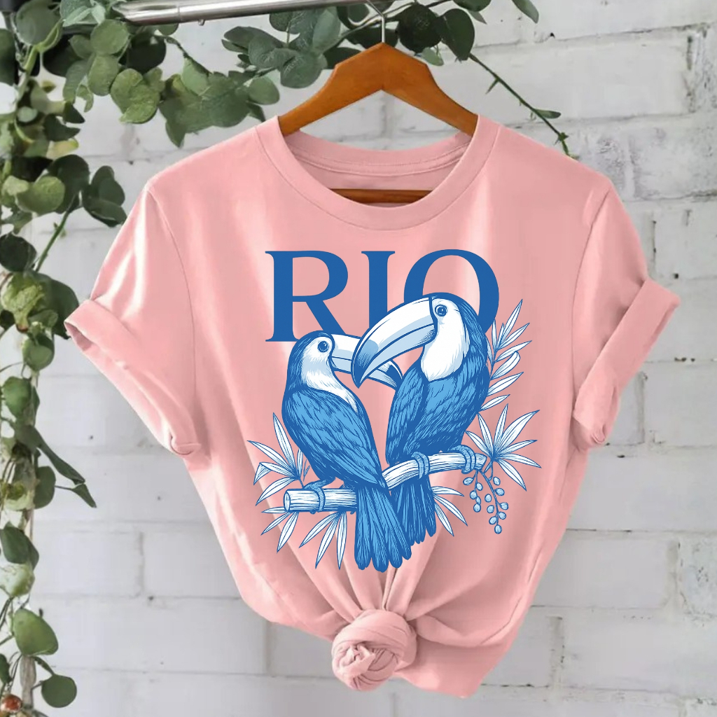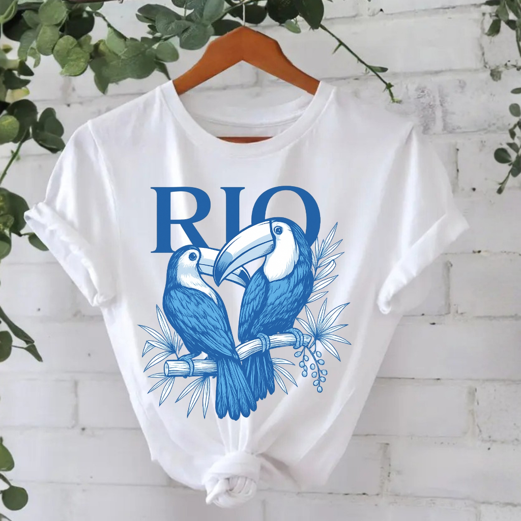 Camiseta Feminina Algodão Tropical Brasil Amazônia Estampada RIO
