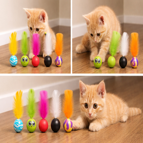 Kit 12 Bolinhas Interativas Para Gatos Silicone Colorido Penas Brinquedo Antiestresse Pet Exercício