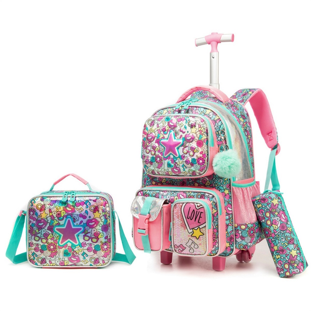 Kit Mochila Infantil Rodinhas Lancheira Térmica Escolar Menina Reforçada Lequeen