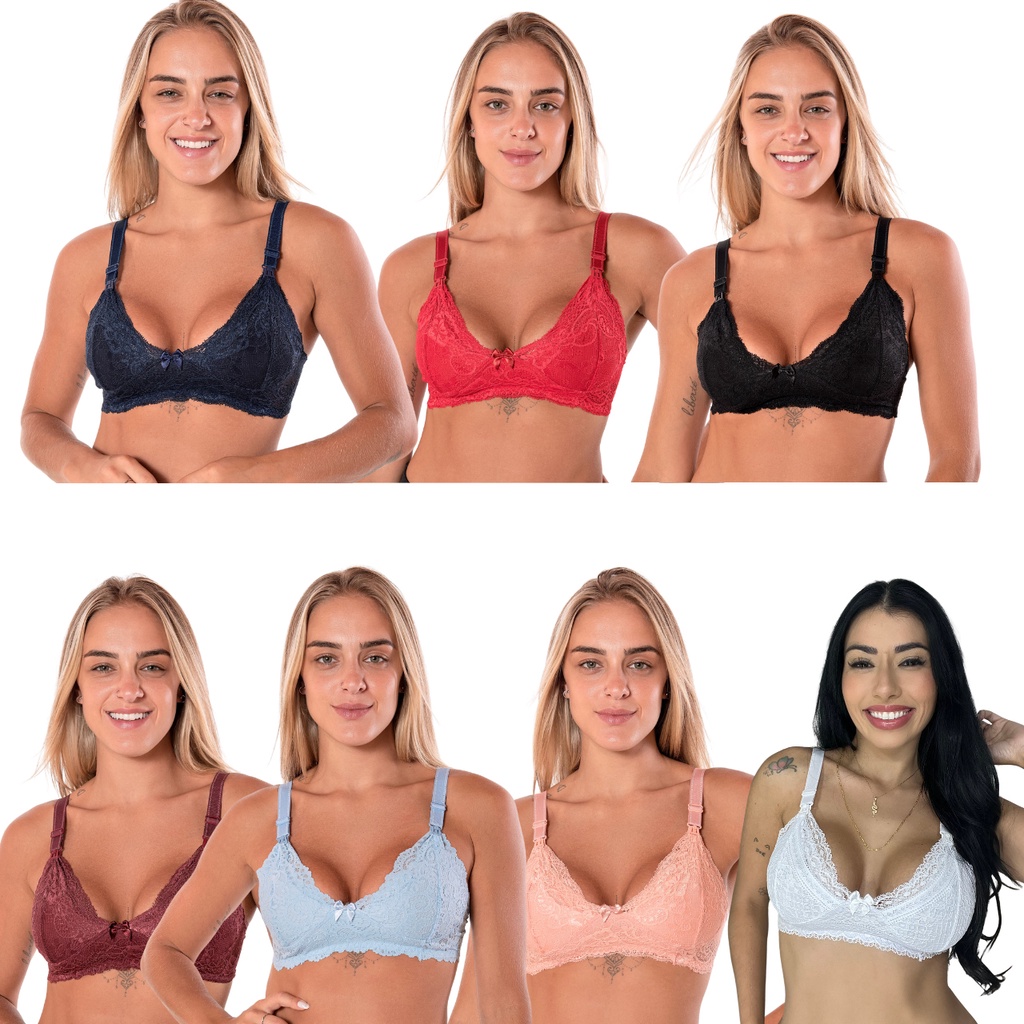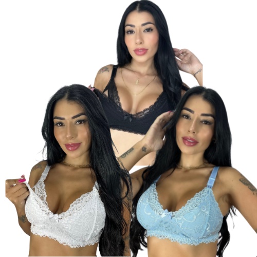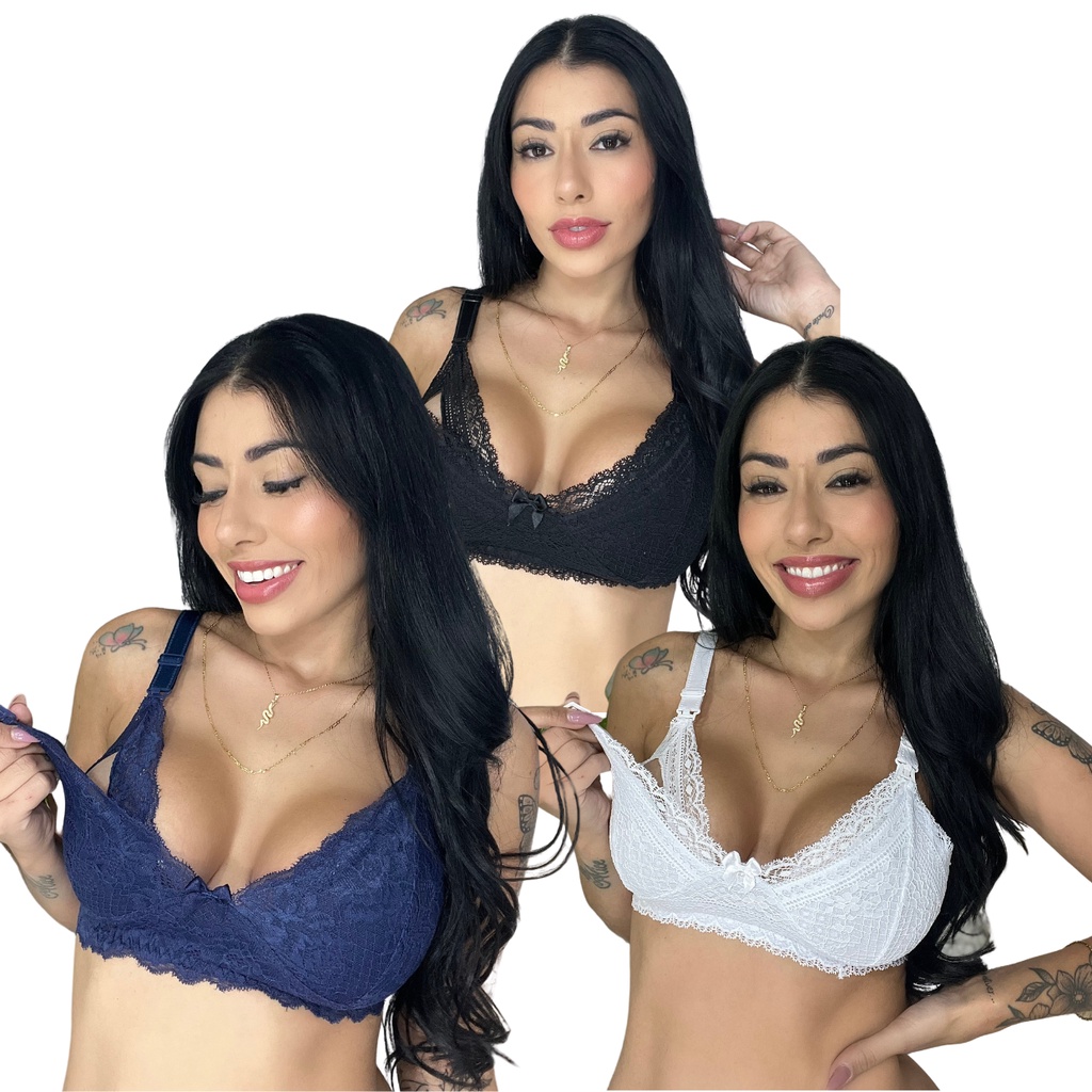 Kit 3 Sutiã Lingerie Amamentação Reforçado Renda Gestante Pós Parto
