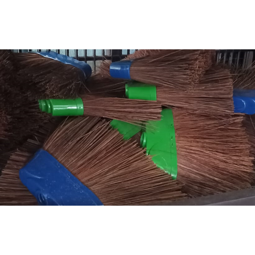 Kit 2 Vassouras de Piaçava Natural 30cm Base Plástica Reforçada com Cabo Limpeza Pesada Casa Quintal