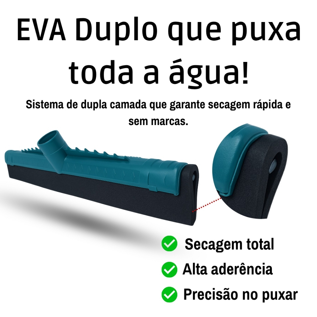 2 Rodos Plástico 30cm EVA Duplo com Cabo – Secagem Rápida, Puxa Água Forte, Limpeza Eficiente Turbo