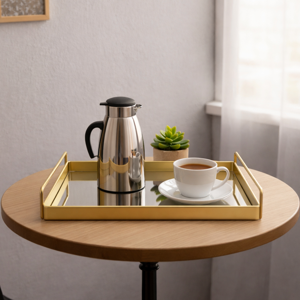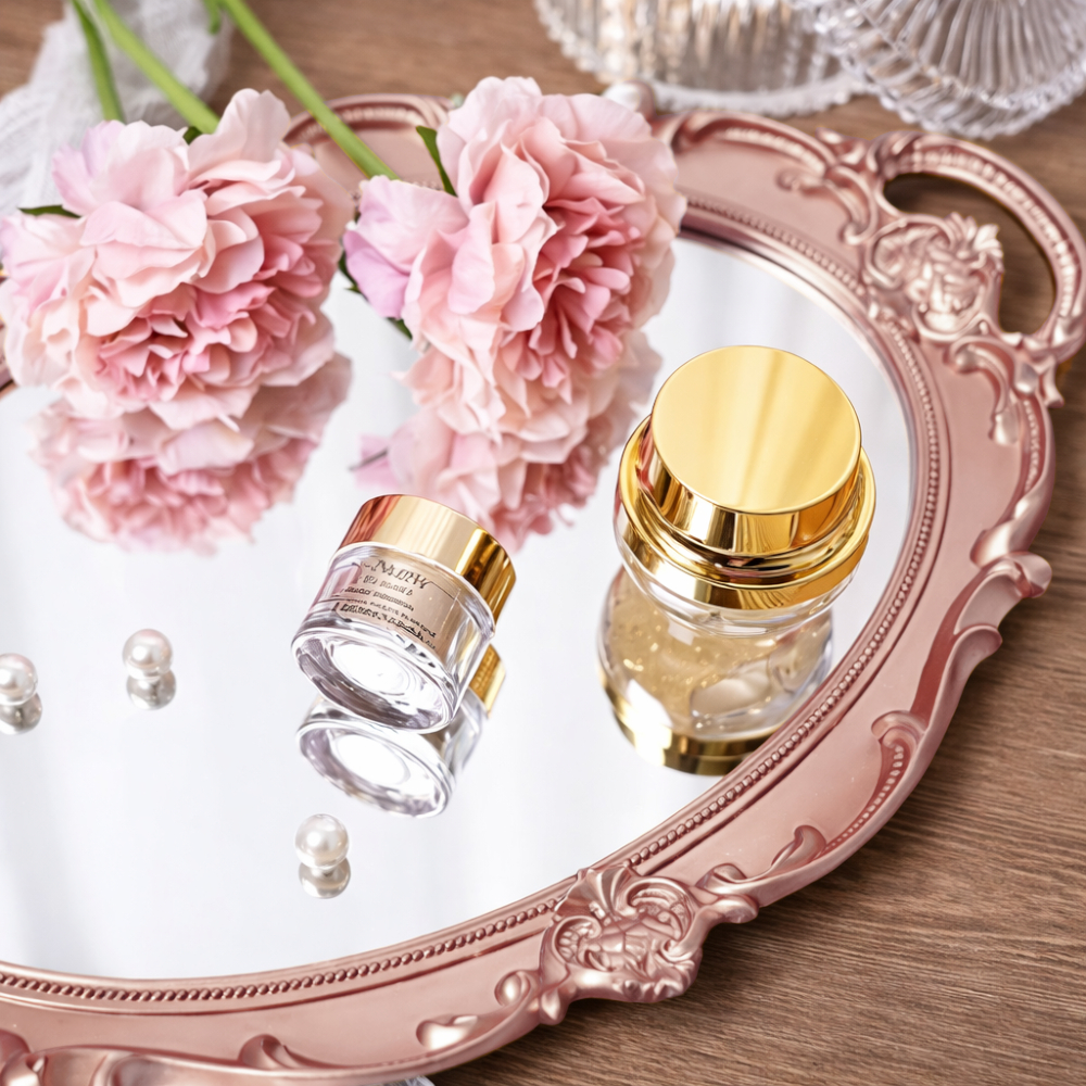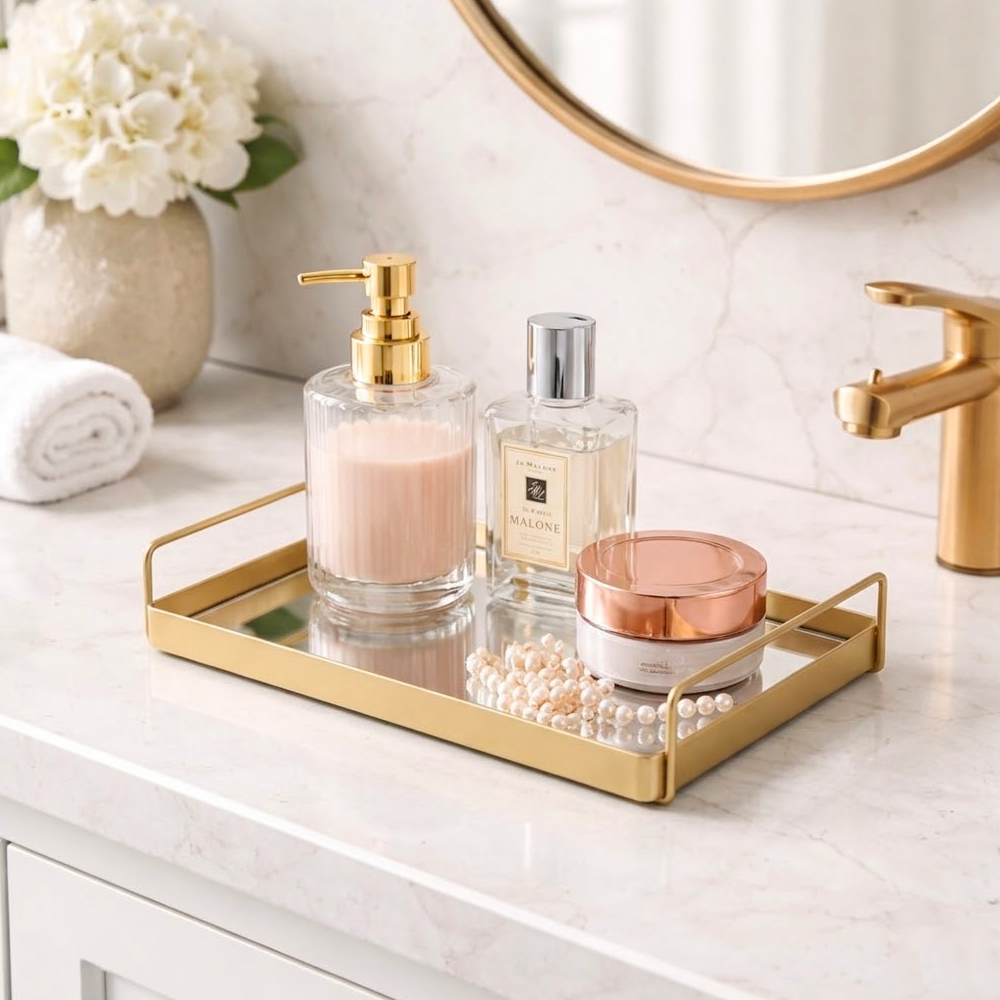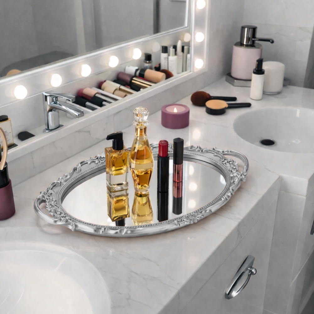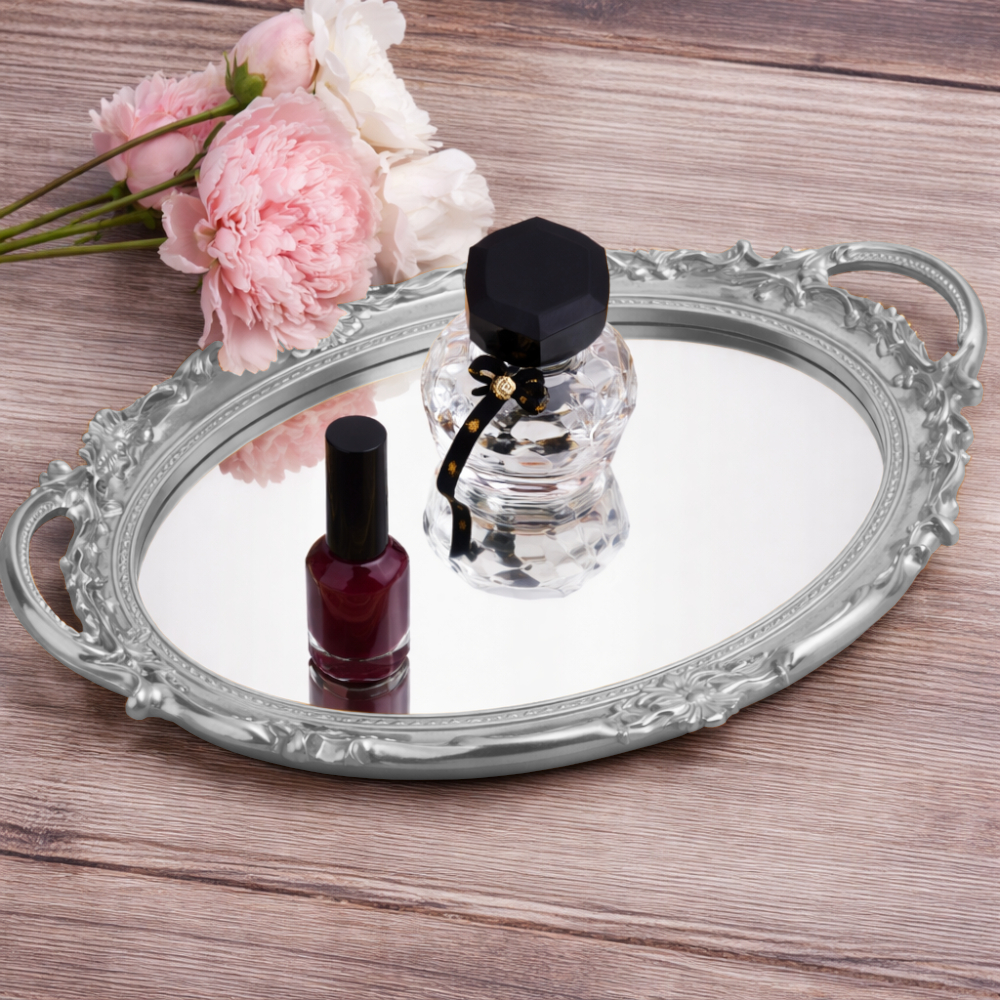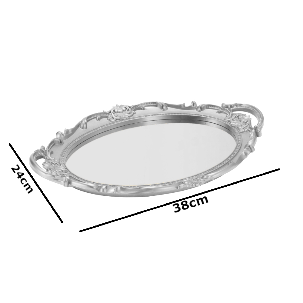 Bandeja Oval c/ Superfície de Vidro Espelhado Estilo Europeu 38,5 x 25cm Rose Gold e Dourada