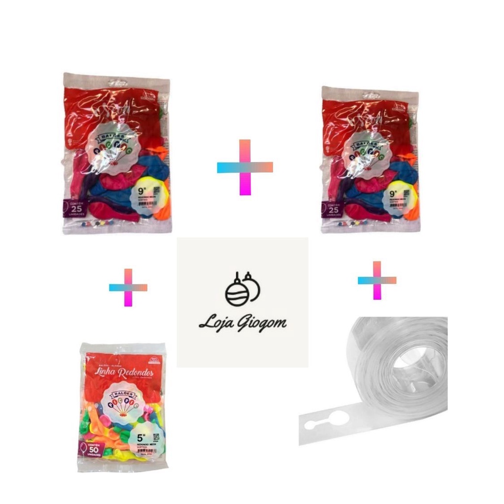 KIT - 100 Balões Neon + Fita de arco desconstruído