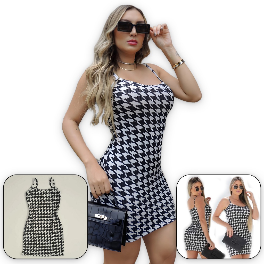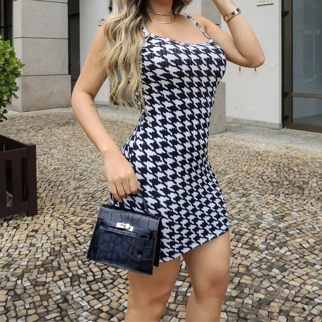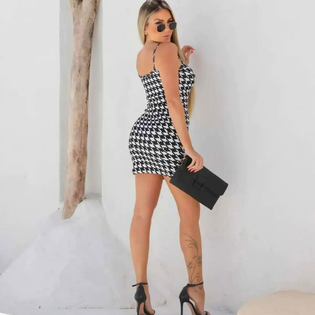 Vestido Feminino Alcinha Pied de Poule