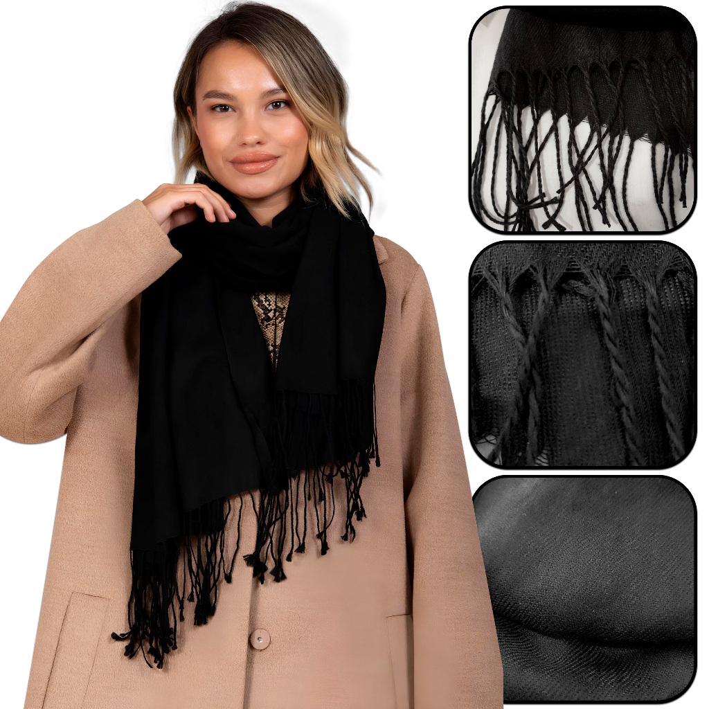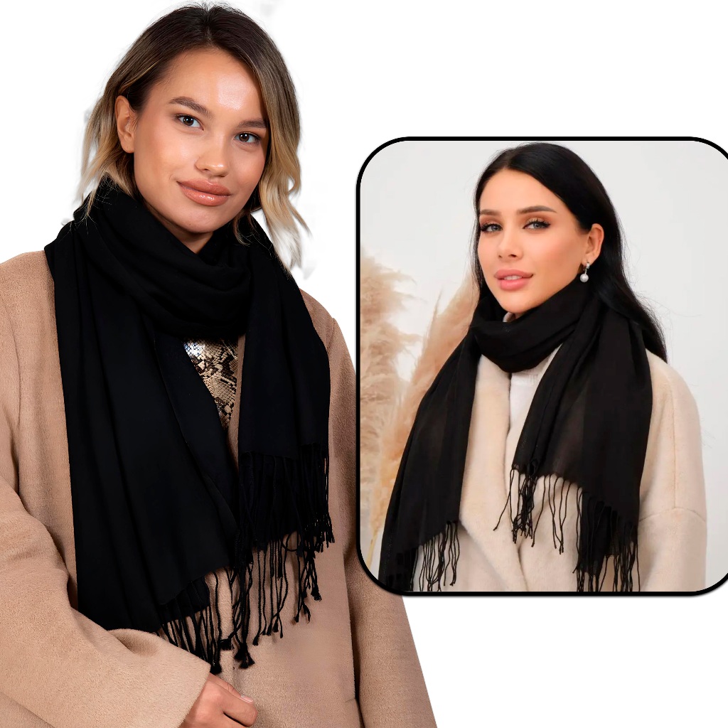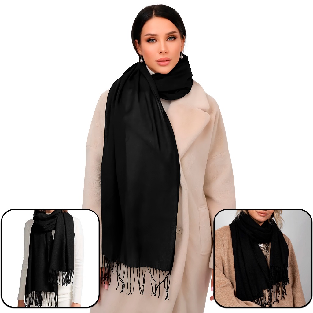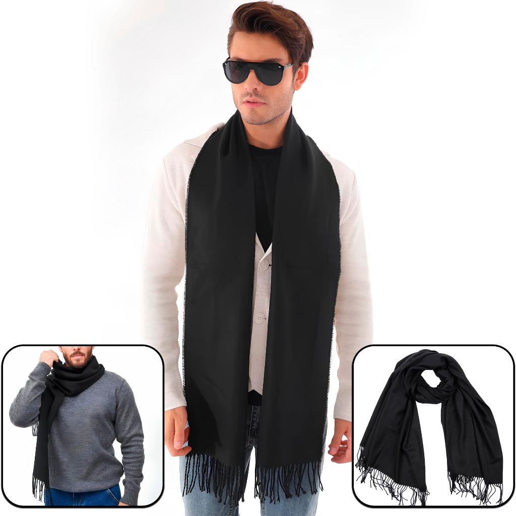 Cachecol Preto Pashmina Xale Echarpe Elegante Unissex