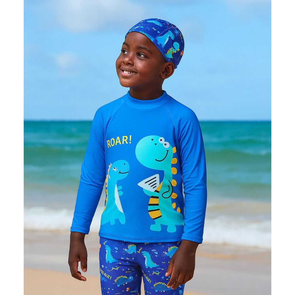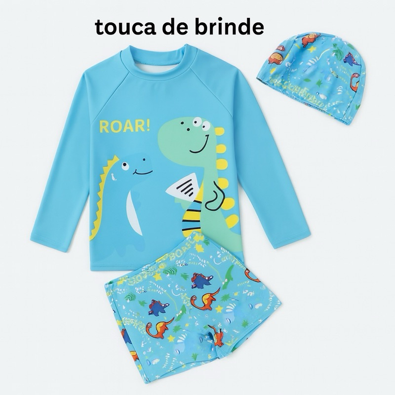 Conjunto Infantil Praia Dino Menino UV Blusa + Sunga