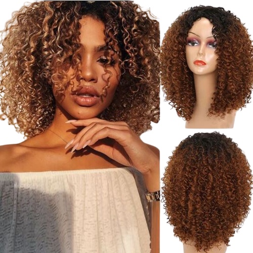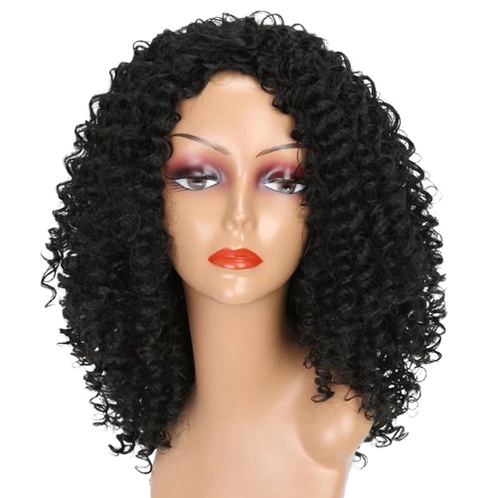 Peruca lace wig cacheada afro fibra futura 60cm preta