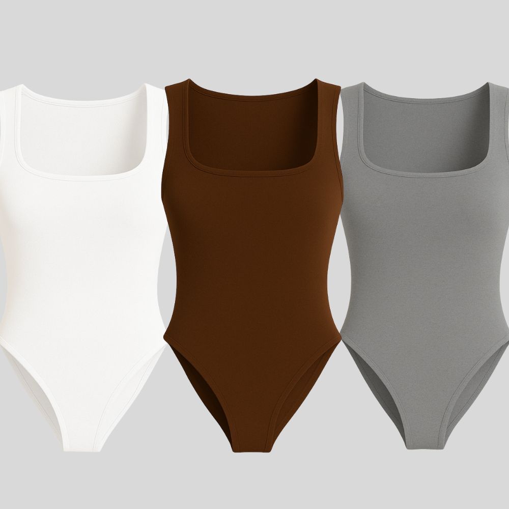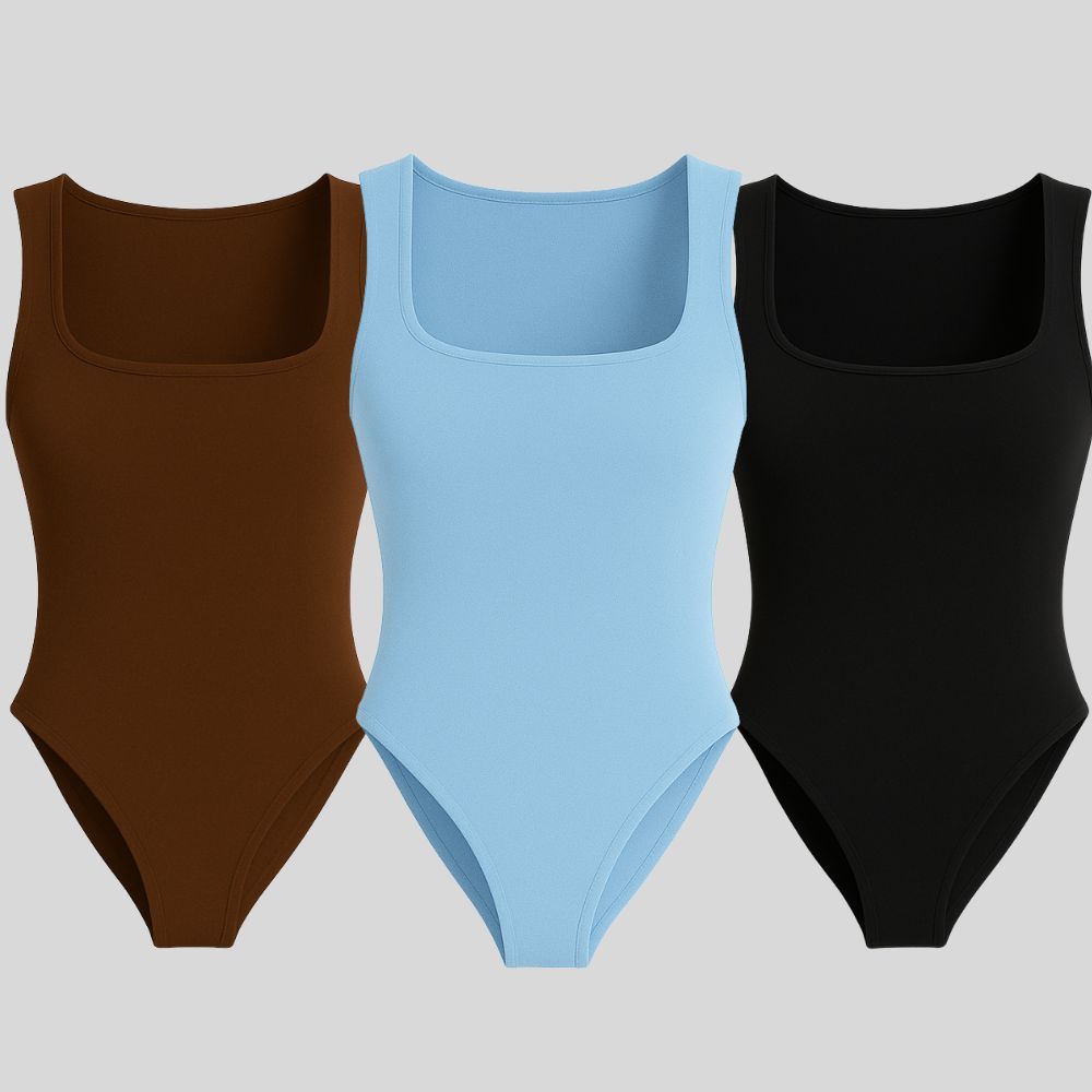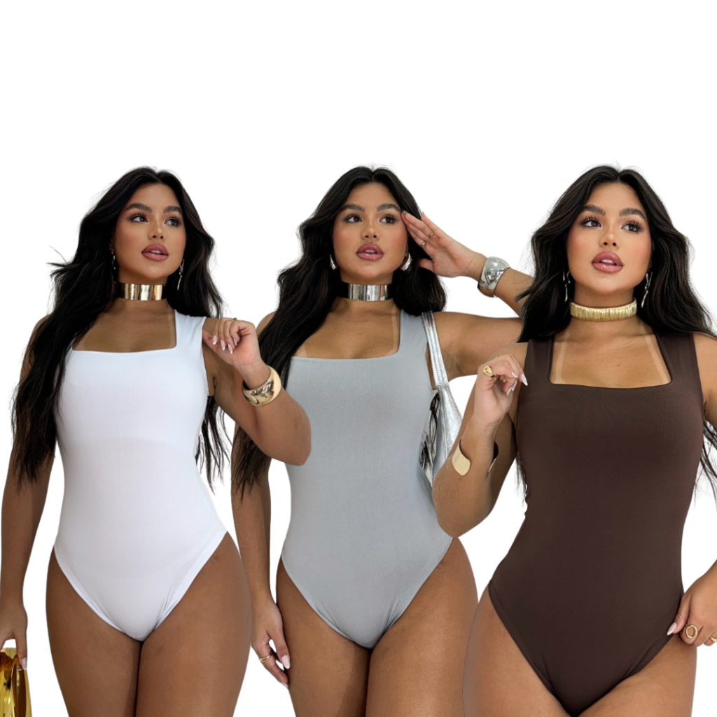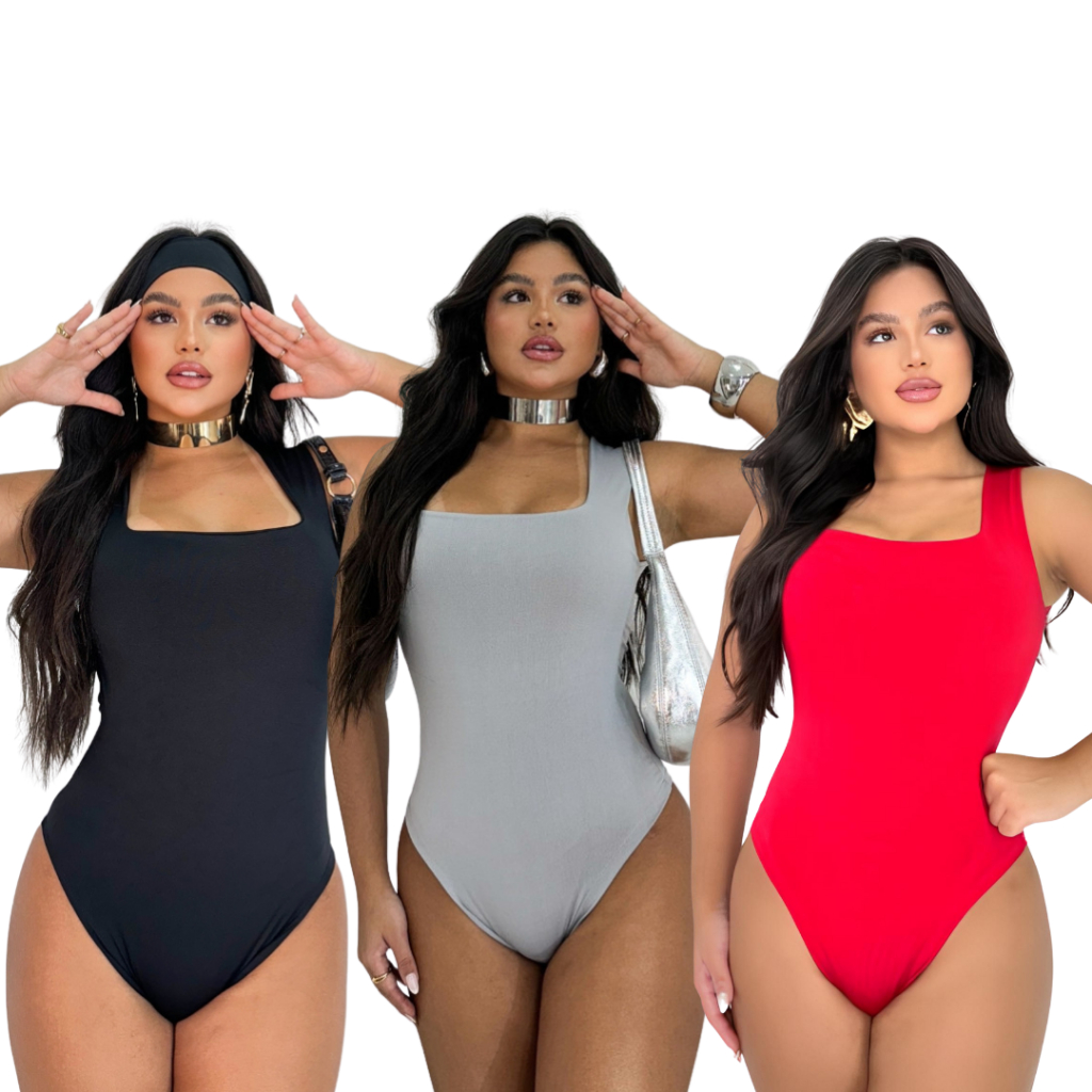 Kit 3 Body Feminino Decote Quadrado Alça Larga Regata Suplex Liso Casual Forro Duplo Moda Basica