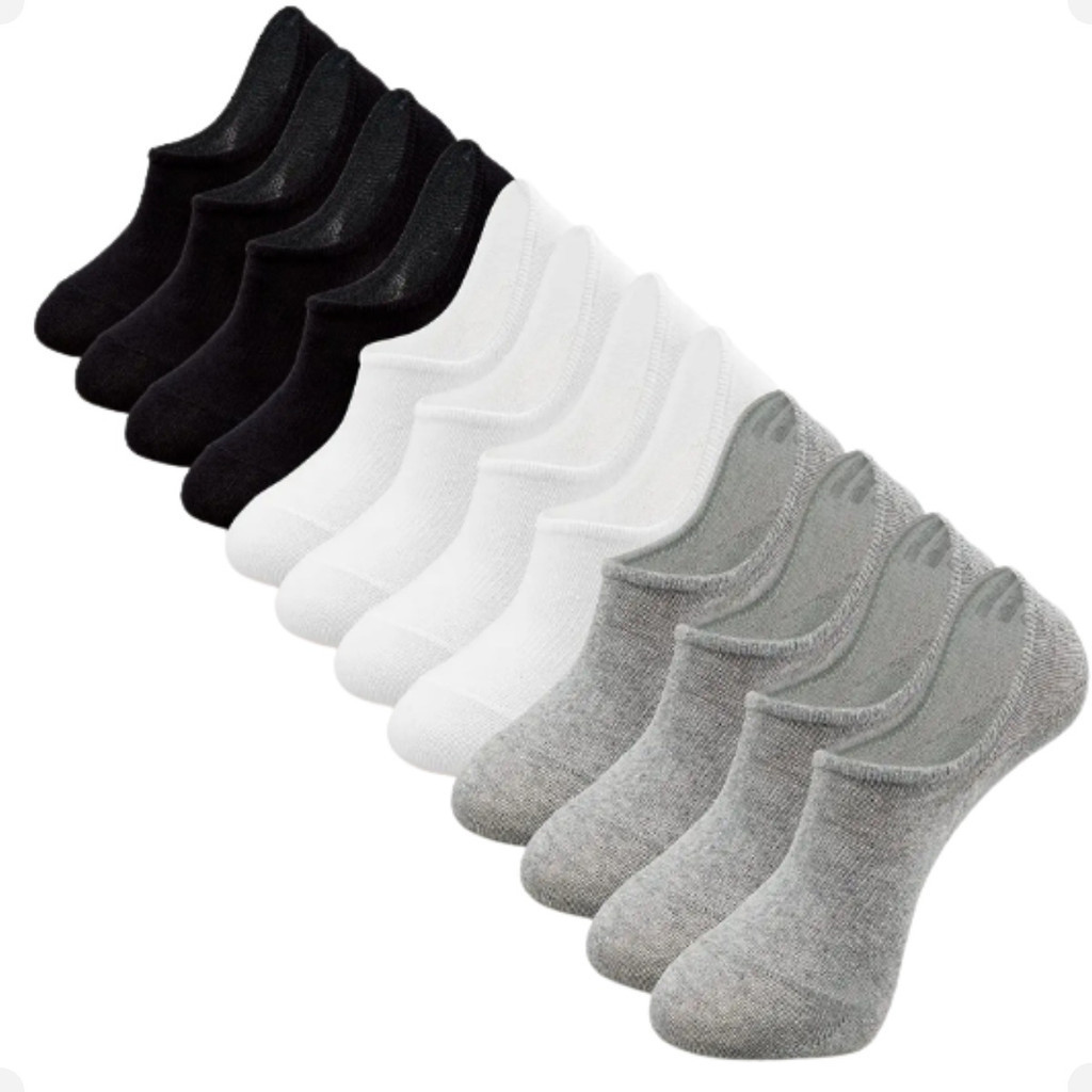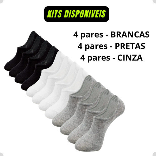 Kit 12 Pares Meias Feminina Sapatilha Invisível Adulto (Preto/Cinza/Branca)
