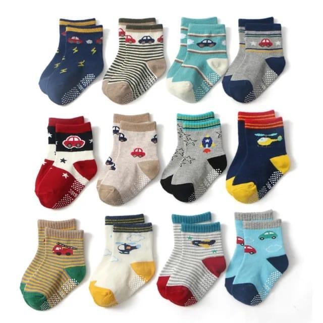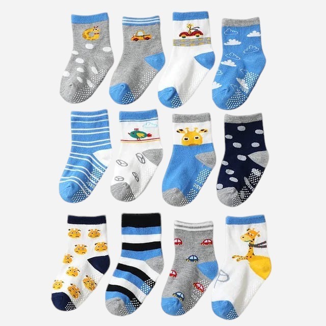 Kit 6 e 12 Pares de Meias Masculino para Recém Nascidos e Bebê Menino c/ Antiderrapante