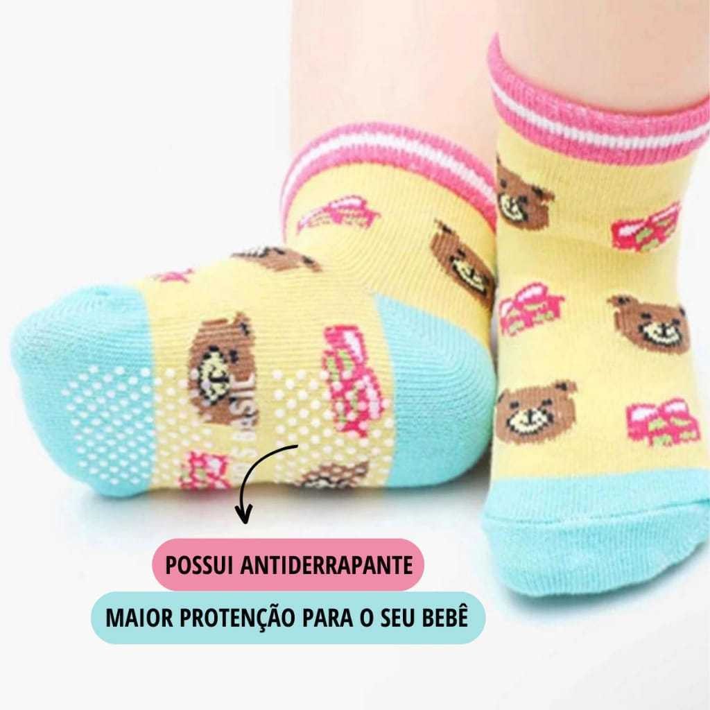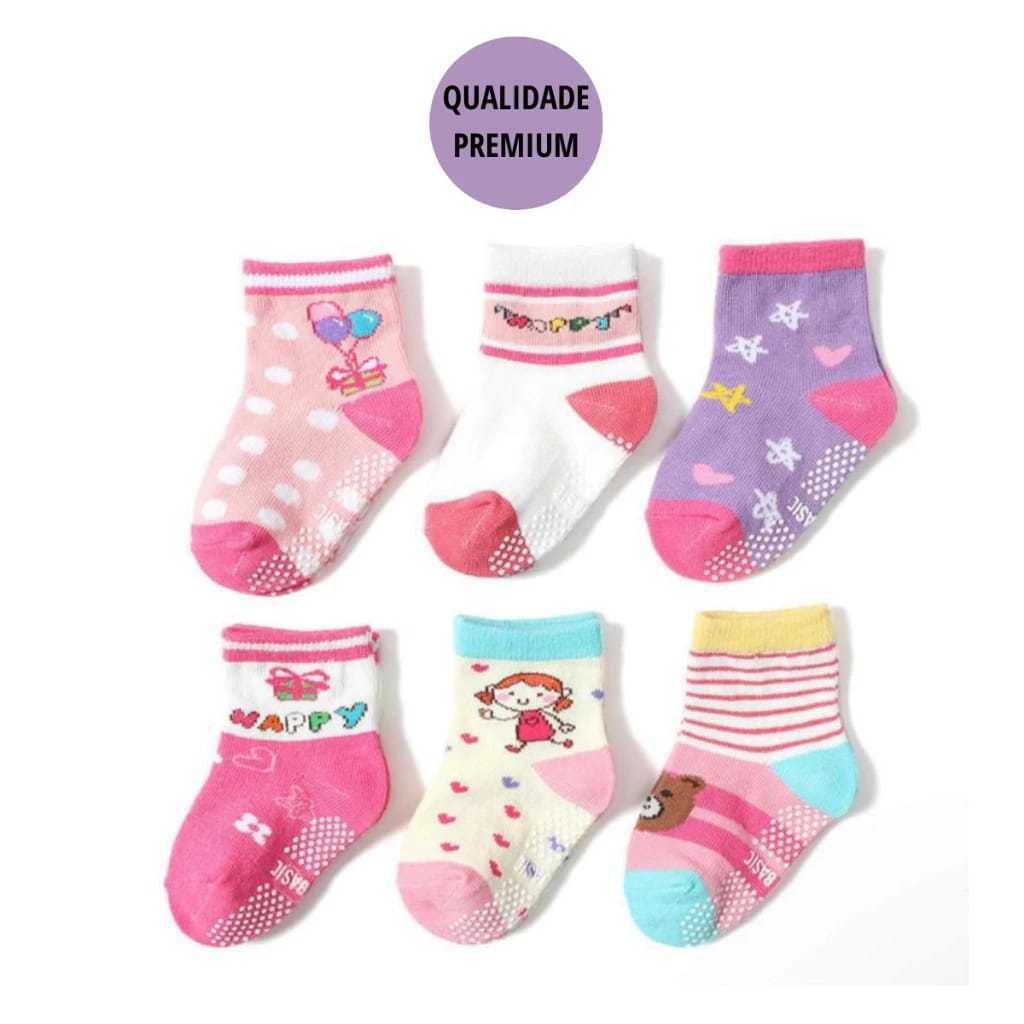Kit 6 e 12 Pares Meia Antiderrapante Infantil Menina Criança Bebê 0 a 10 anos