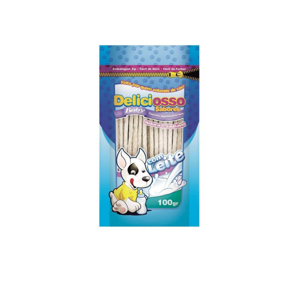 Kit Petisco para Caes Osso Palito Deliciosso com leite 100g - 4 pacotes
