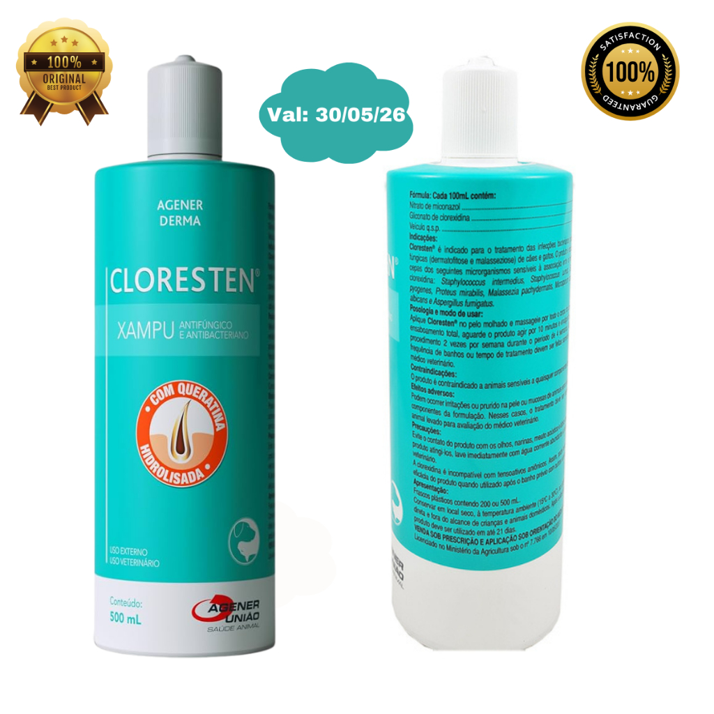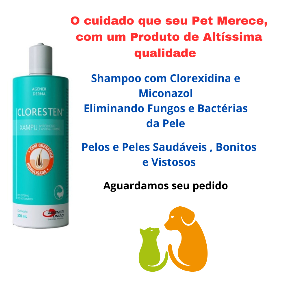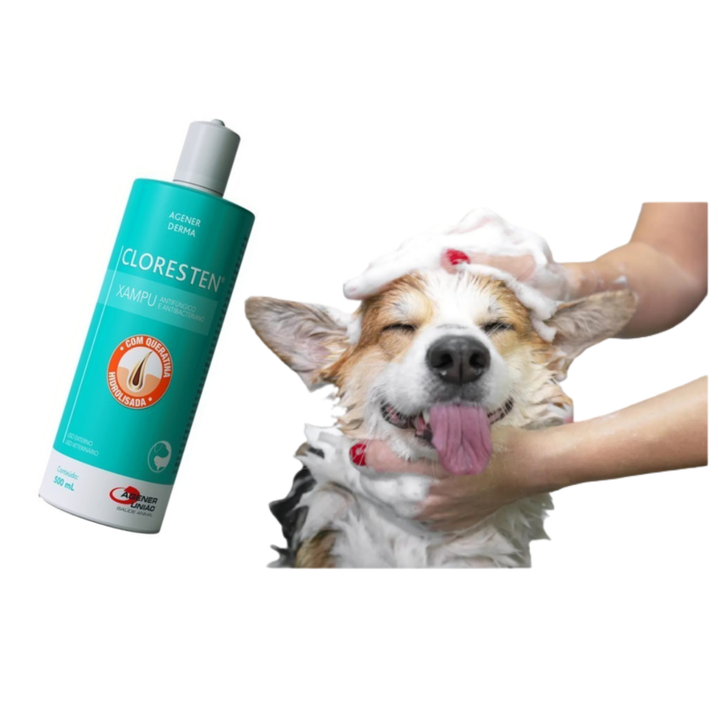 Shampoo cloresten 500ml antibacteriano antifúngico cães e gatos ORIGINAL