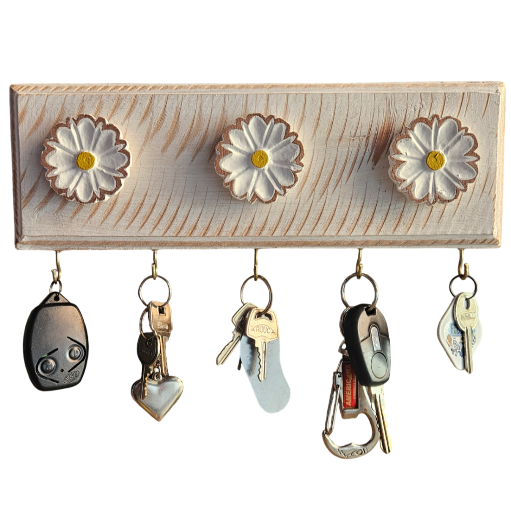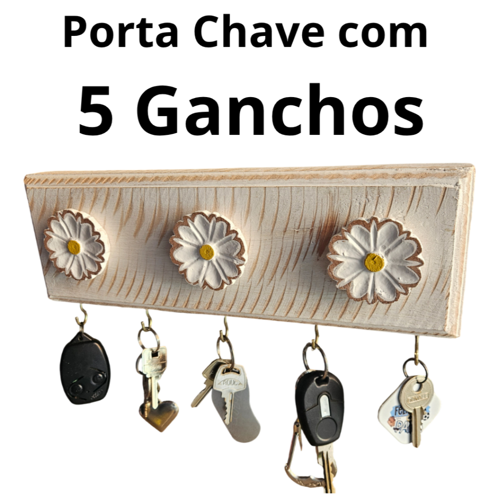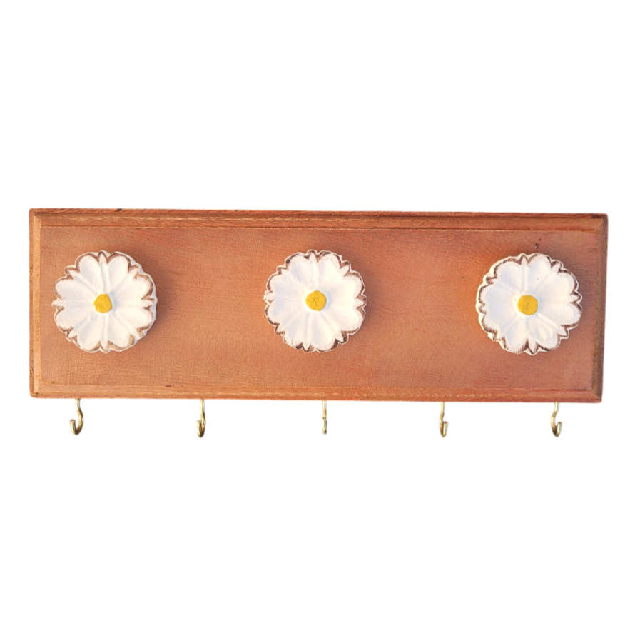 Chaveiro Porta Chave Organizador Parede Rústico Artesanato Flor Madeira