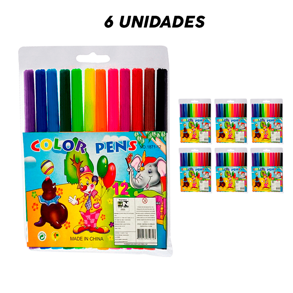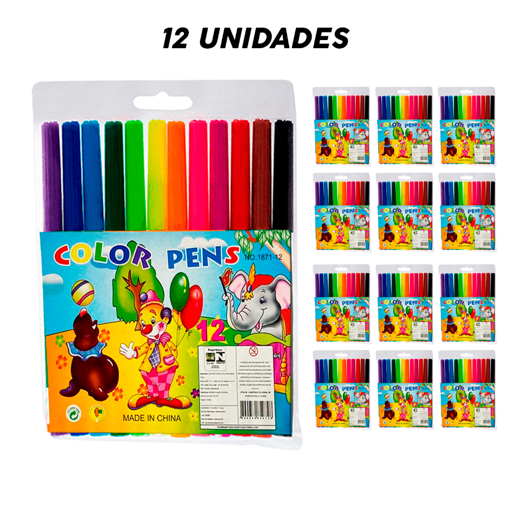 Kit Com 12 Pacotes De Estojos com 12 Canetinha Hidrográfica Leo Leo 6 ou 12 unidades