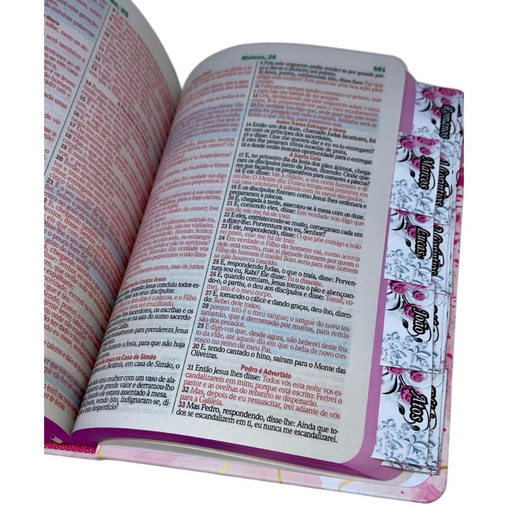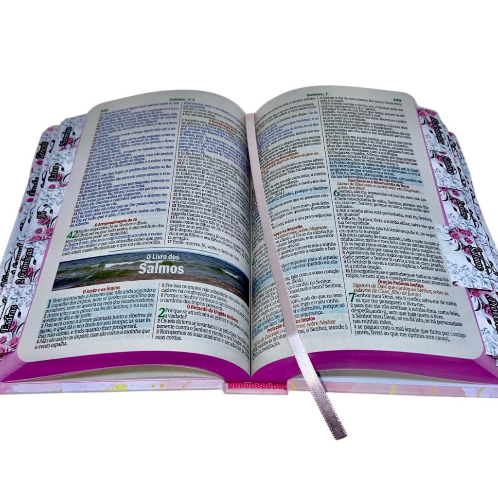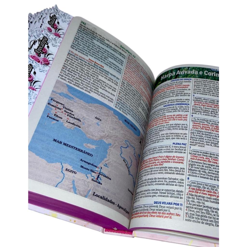 Bíblia Leão Seja Forte Rosa Arc Letra Gigante Capa Dura Com Harpa E Abas Índice Adesivo