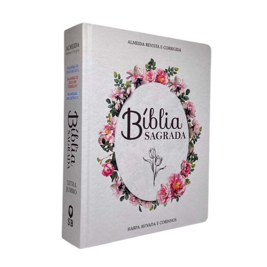 Bíblia Evangélica Letra Jumbo Grande Capa Dura Flor Minimalista Linguagem Arc Com Harpa e Índice