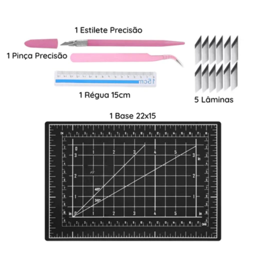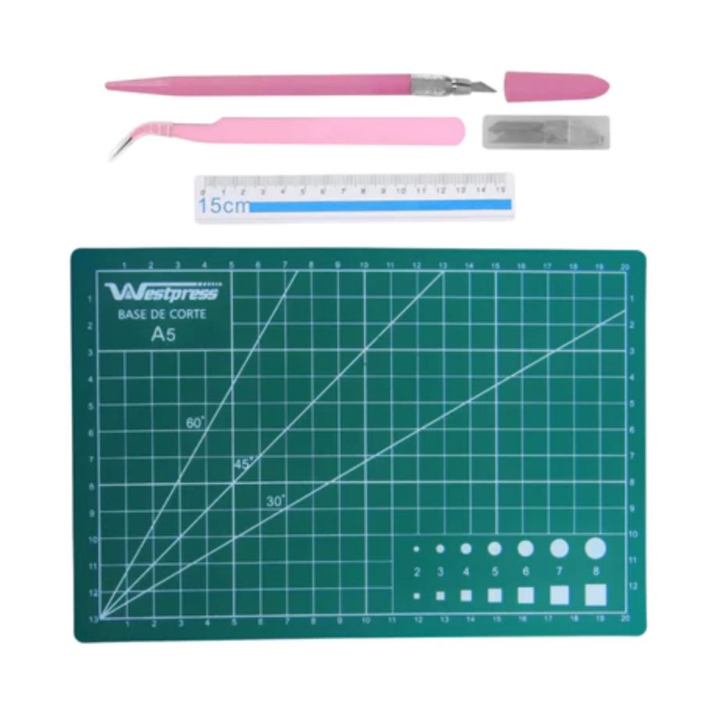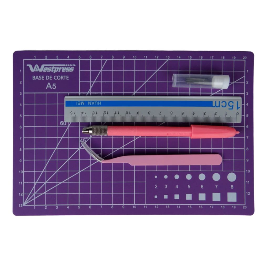 Kit Patchwork A5 Base De Corte 22x15 Régua Pinça Estilete